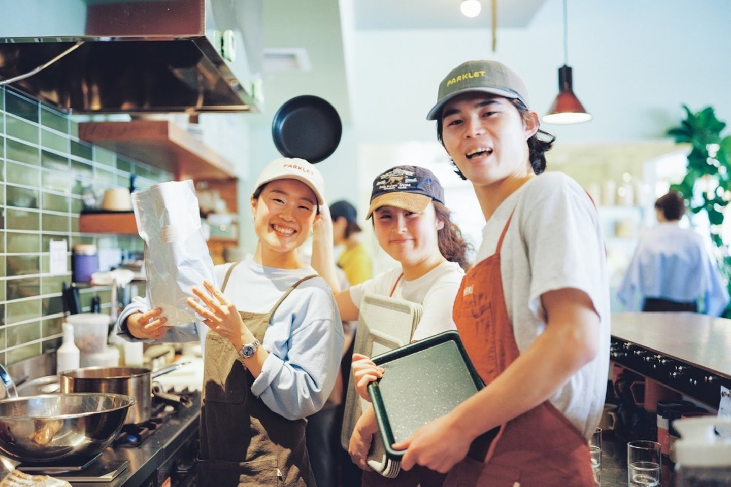 最初は経営企画として、オーナーのJJとKateの通訳をメインにParkletとMeiji Park Market をバックオフィス業務や企画運営のサポートをしていたのですが、その中で現場の声を聞き、働きやすい環境づくりがどれだけ大事かを実感しました。マネージャーやスタッフがそれぞれ責任と自覚をもって業務に注力できるよう指導したり、かつ、StapleとしてParkletブランドを大きくしていくために色々と試行錯誤していく中で、これまでの様々な業界での経験を生かして少しずつ経営の側面にも関わるように。こうしていくうちに、ただ現場で働くスタッフのサポートだけでなく、ブランド全体を一貫して見守る人間が必要だと感じたため、オーナー3人に相談をもちかけ、昨年末から正式に就任しました。