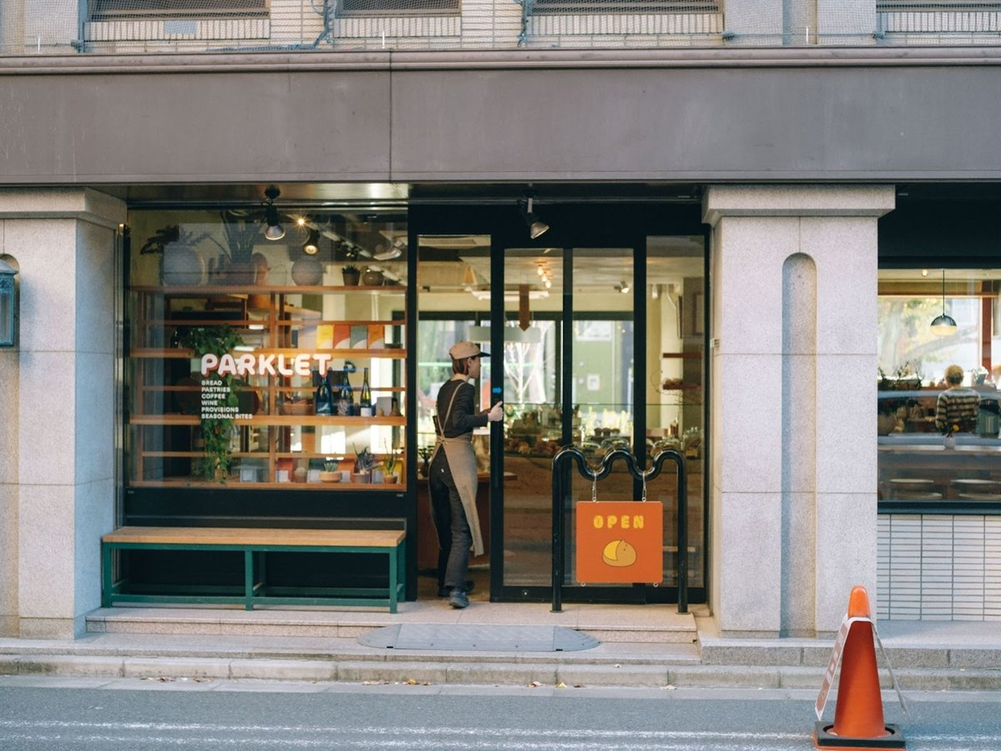 店名の「Parklet(Park-let / パークレット)」は小さな公園、憩いの場を意味し、日本橋小舟町の堀留公園に隣接するこだわりの農家さんから仕入れた野菜を使った食事、地球環境に配慮したコーヒー、ナチュラルワインなどが楽しめるカフェベーカリー