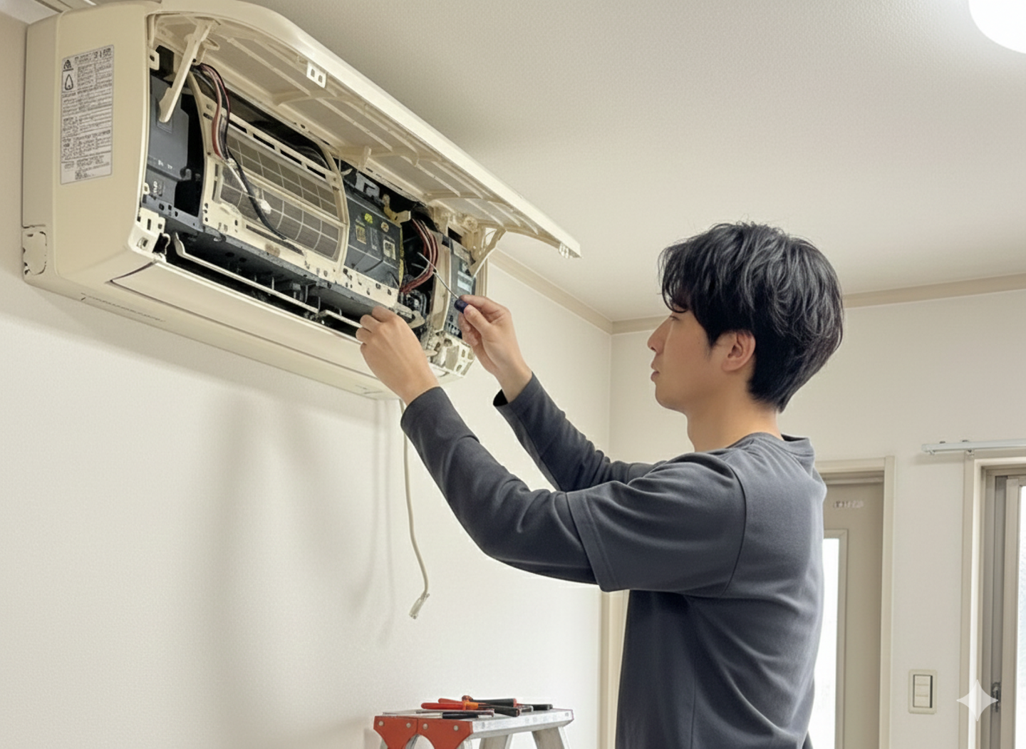 エアコンの修理や点検は、一人で現場に向かうのが基本です。