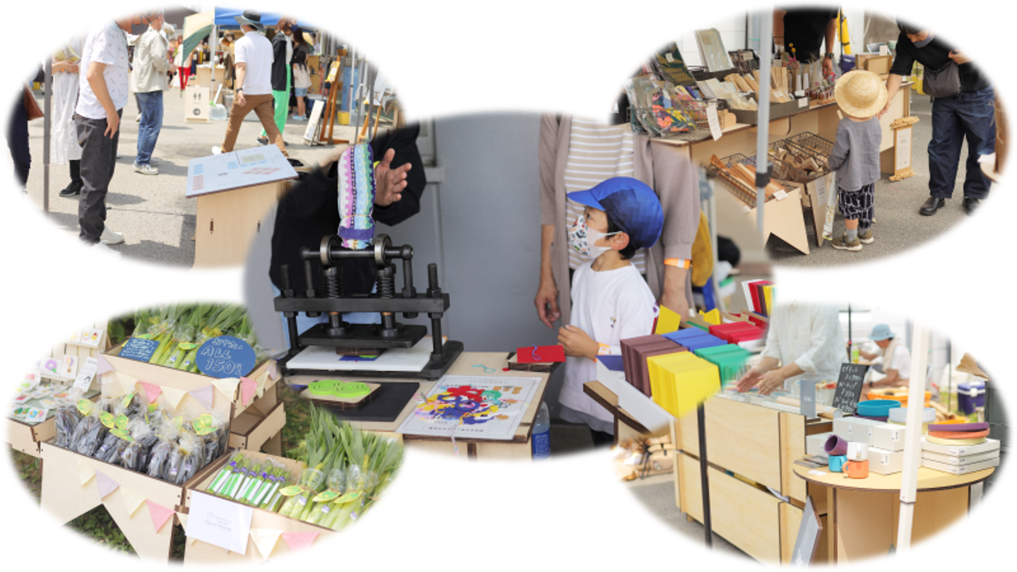 欲張りなわたしたちは、新商品である店舗什器のお披露目、工場見学、型抜きマルシェ(ワークショッ