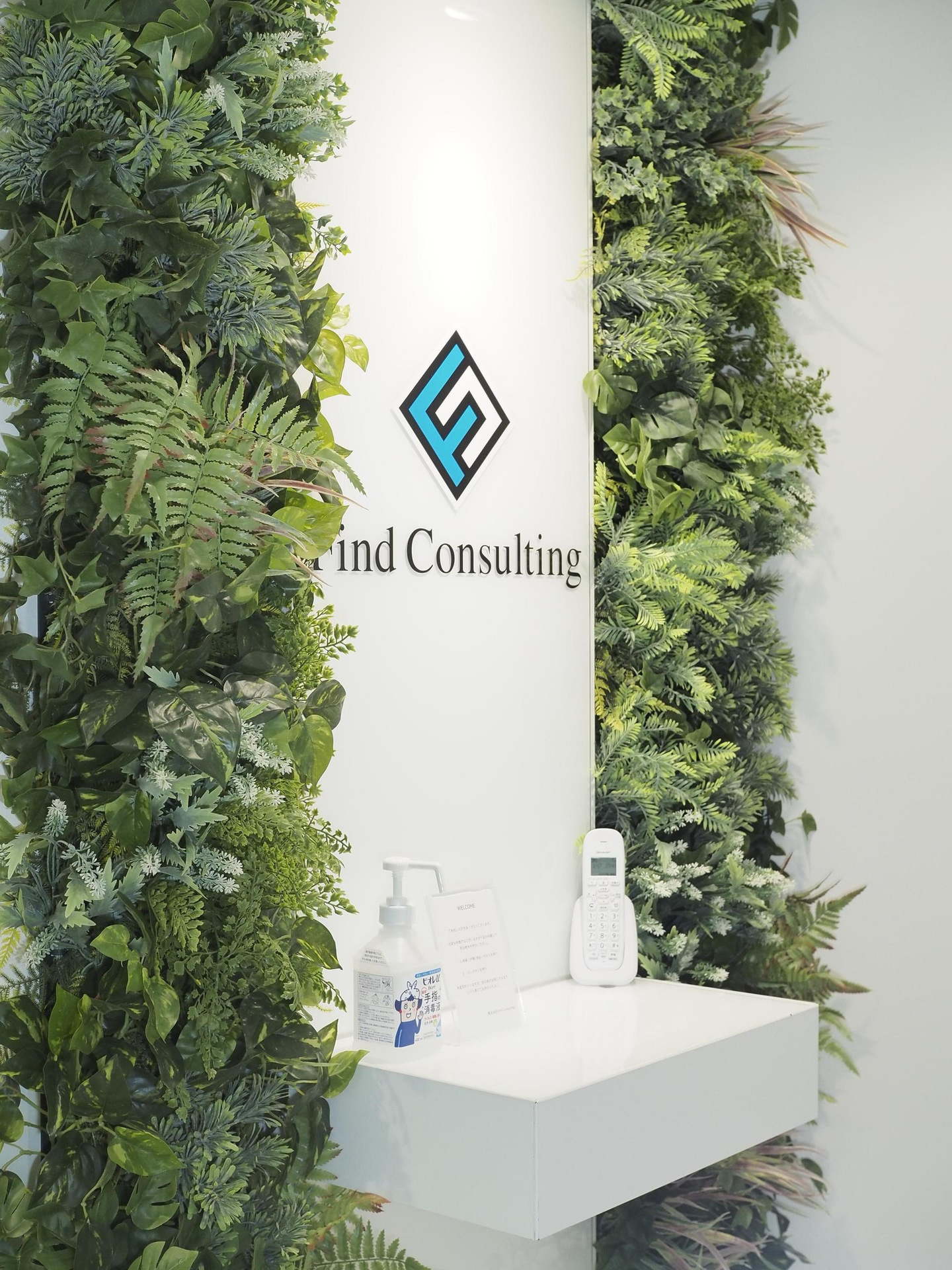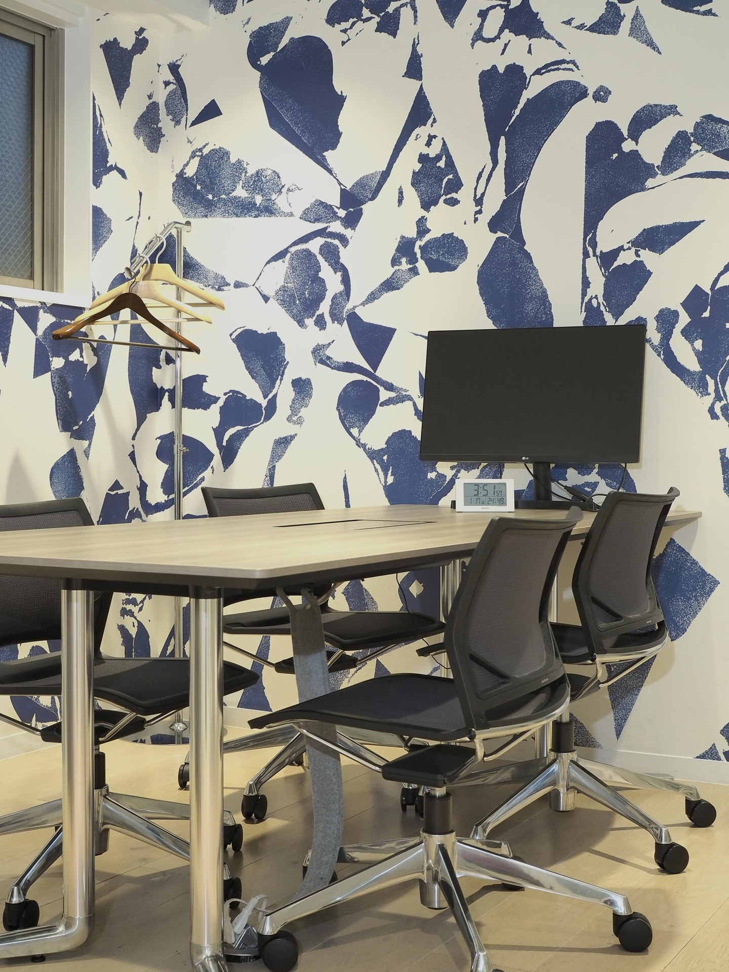 会議室にはFindConsultingカラーの青が入ったオシャレな壁紙が!
