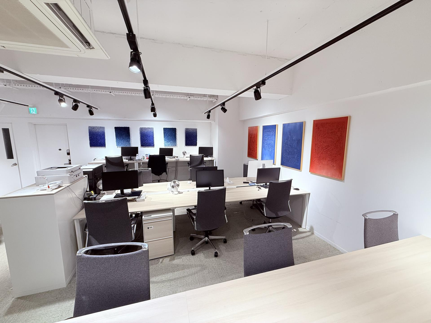 社長が厳選した、FindConsultingカラーの青と情熱の赤が入った絵画も飾っており、
