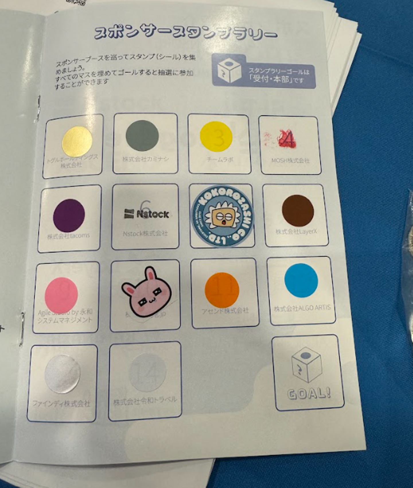 また運営で用意してくださったスタンプラリーもとっても盛り上がっておりました!ブースを回ってシールをゲットし、すべて集めると景品が当たるというスタンプラリーなのですが、ココロザシではそこに貼るシールも準備させていただきました!