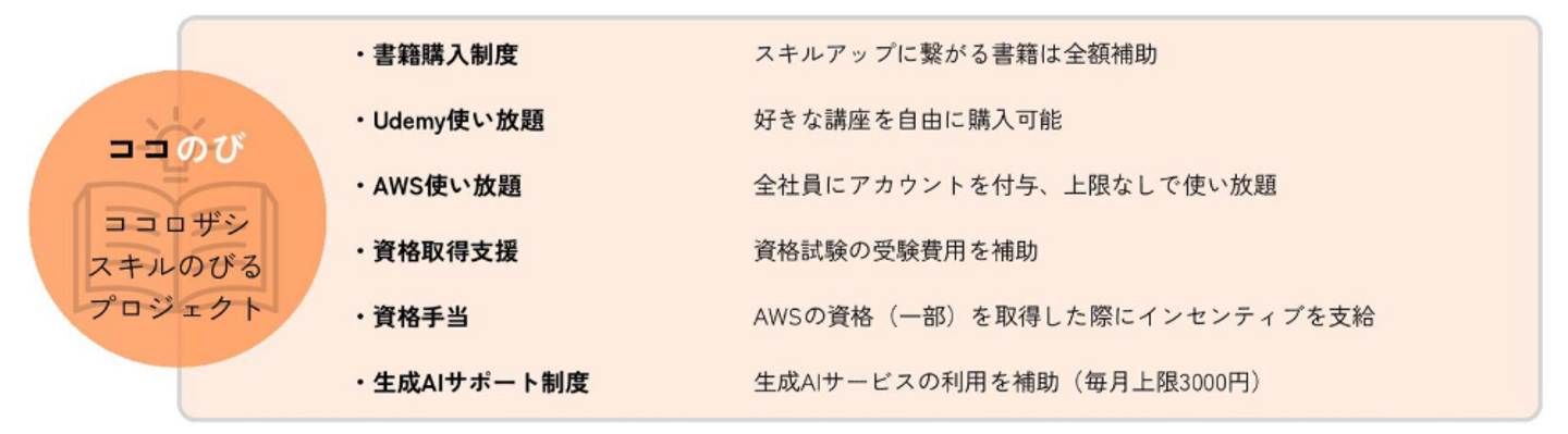ココロザシではスキルアップ関連の福利厚生がとにかく充実していて、書籍やUdemyは上限なしで購入できるのですが、書籍といっても世の中にたくさんあるので、一人ひとりの志向や状況に合わせて、最適な教材や学習方法についてアドバイスを行っています。