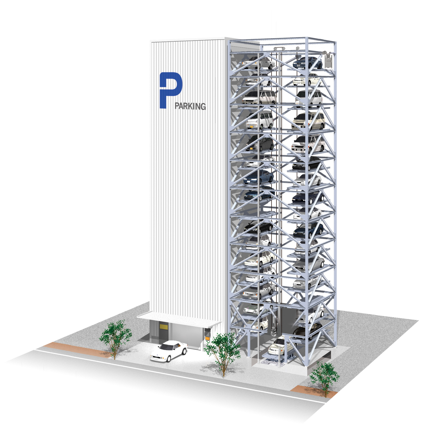 都市部で車をスムーズに収容し、街の景観と利便性を守る「機械式立体駐車場」。