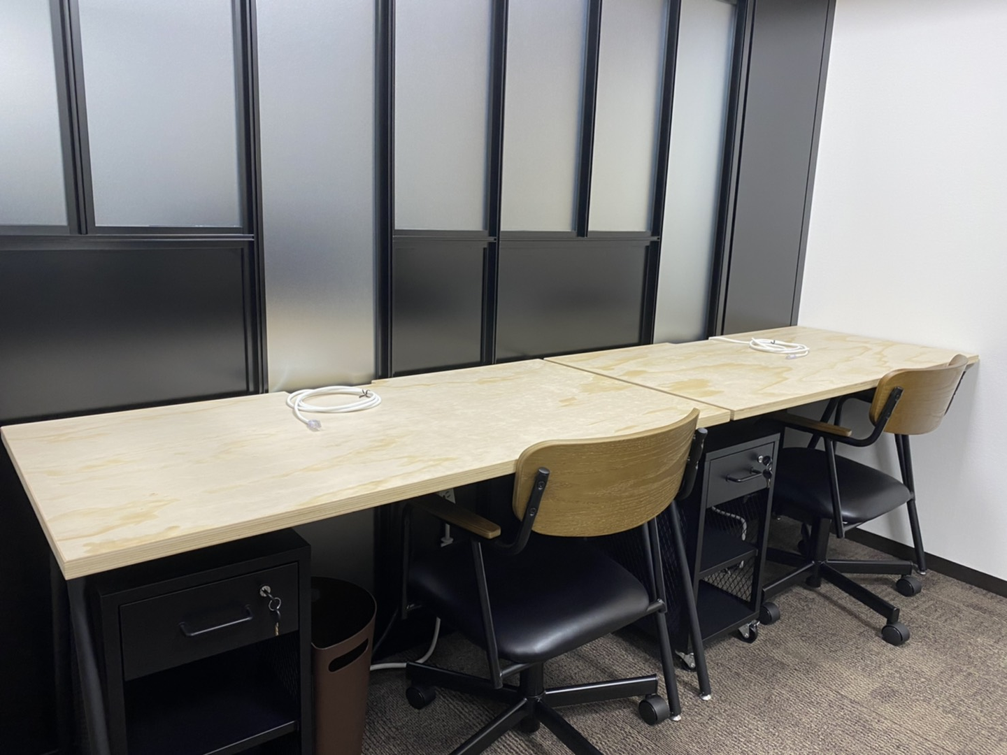 シンプルな作りながら、それぞれが集中出来るように壁向きにデスクが設置されています。