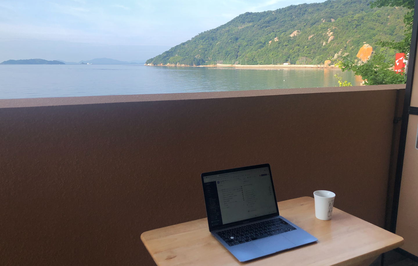 ぼくは朝6時に起きて、優雅にコーヒーを飲みながらここで仕事していました。毎日ここで仕事できるのは羨ましい。。。