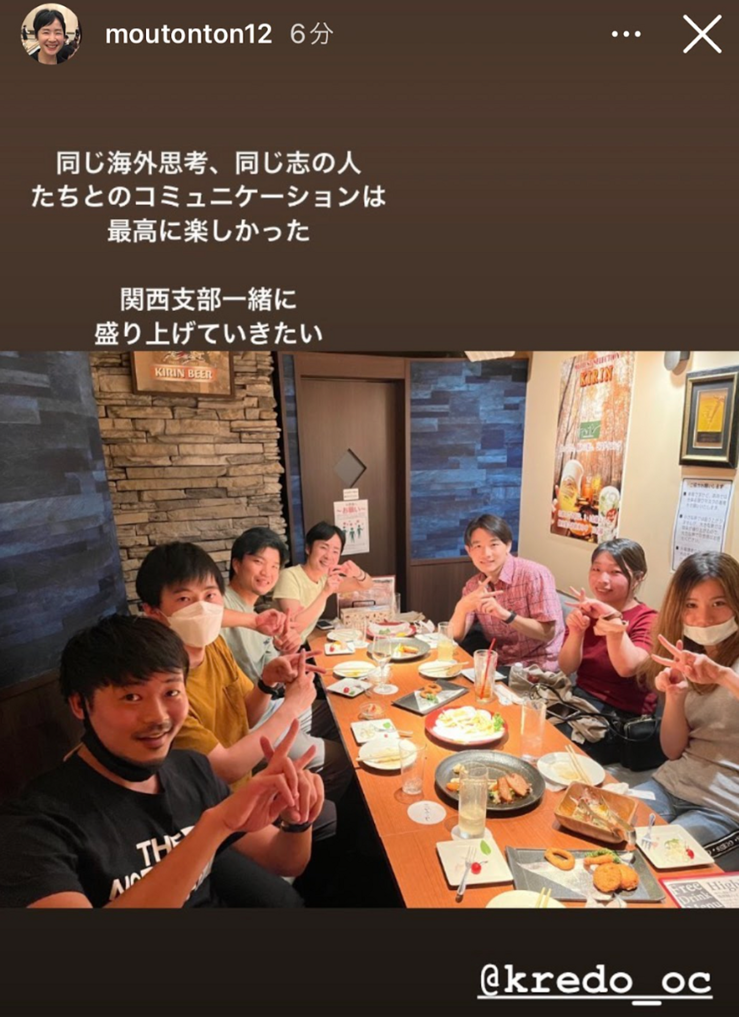 大阪のKredo生徒さんとオフライン懇親会!インスタで投稿していただきました^^