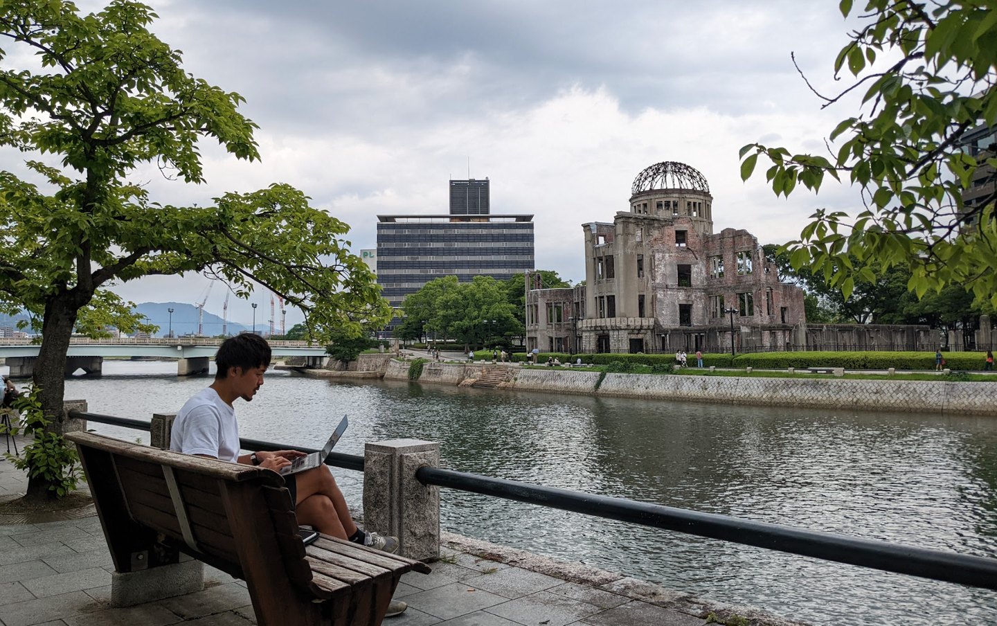 原爆ドームの前でMTG参加しました(笑)