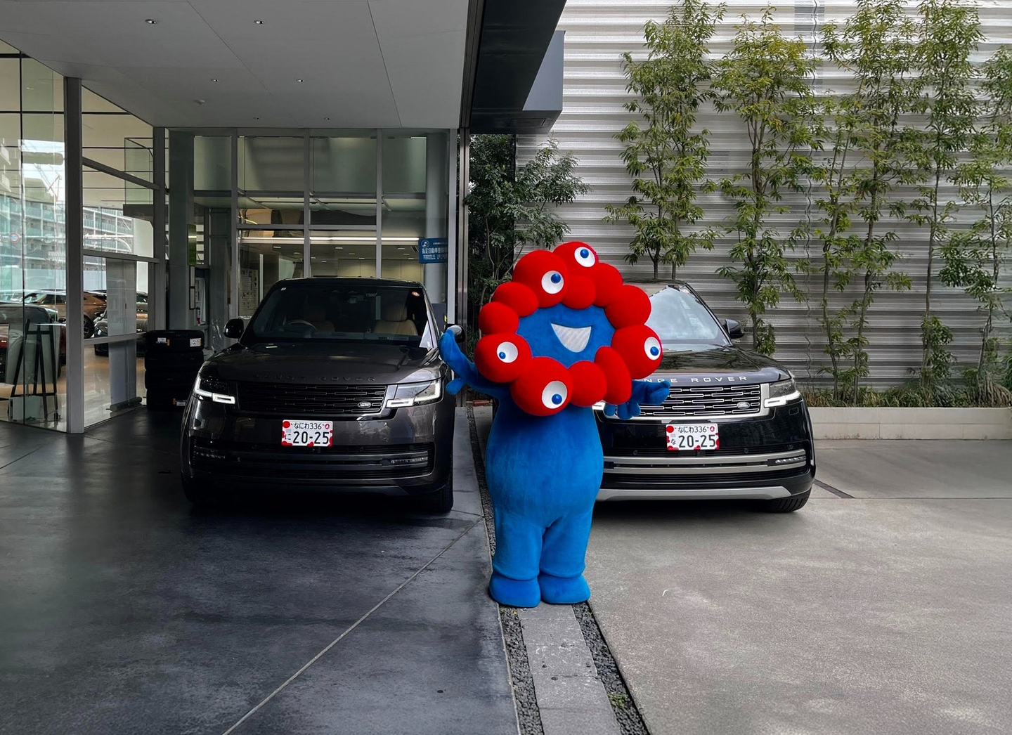 今回の協賛を記念して、2025年3月6日(木)に「ランドローバーなにわ」にて納車式を開催しました。式典には、大阪・関西万博の公式キャラクター・ミャクミャクも登場。今回提供される「レンジローバー」2台とともに式典に色を添えました。