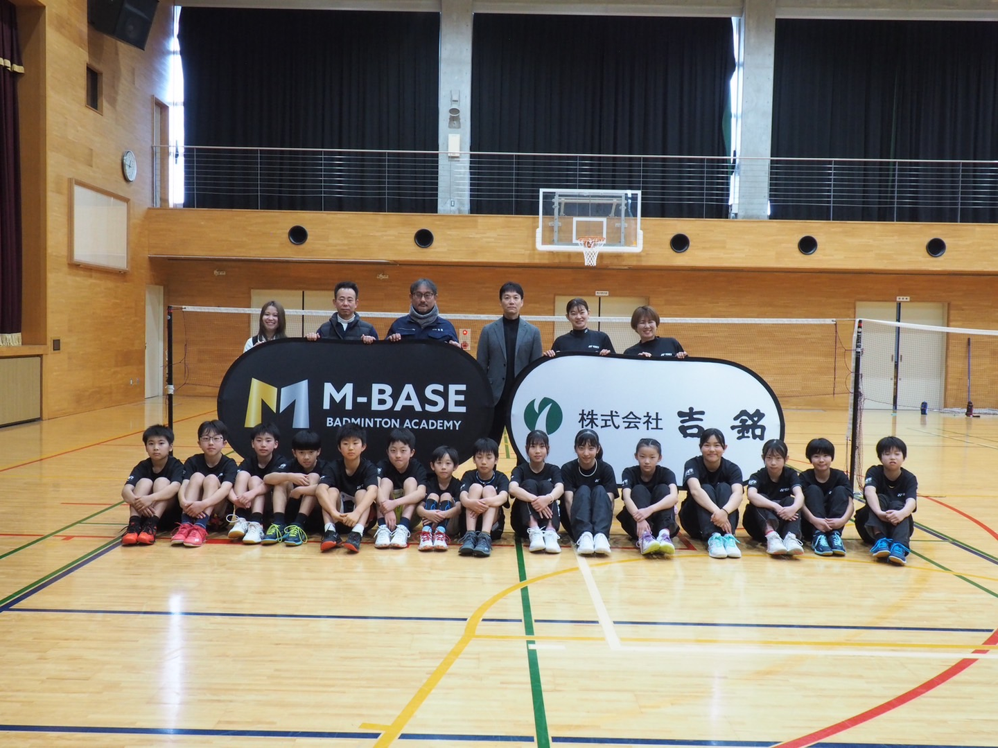 M-BASEは、奈良県内で選抜された小学3年生~6年生を対象に、次世代のバドミントン選手を育成するために毎月1回指導をしていくバドミントンアカデミーです。オリンピックメダリスト髙橋礼華さんと藤井瑞希さんが2023年に髙橋さんの地元である奈良県橿原市で立ち上げました。吉銘は、立ち上げ当初から協賛をしています。
