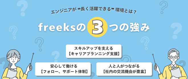 こんにちは!採用担当の森です🌳今回は、freeksの採用担当でありながら、社内の育成やマネジメントにも深く関わっている 岸 佳佑 さんにインタビューをしました!freeksでは、エンジニアを目指す多くの方と日々向き合っており、「どんな人が活躍できるのか?」「未経験でも本当にエンジニアになれるのか?」といった質問をいただくことも多くあります。この記事では、👩💻応募を検討されている方👨💻これから面接を受ける予定の方👩💻事前に雰囲気や面接のポイントを知りたい方に向けて、freeksの社風や選考に込めている想いをお伝えします!「面接=堅苦しい」ではなく、freeksは“人と向き合う”面接を...