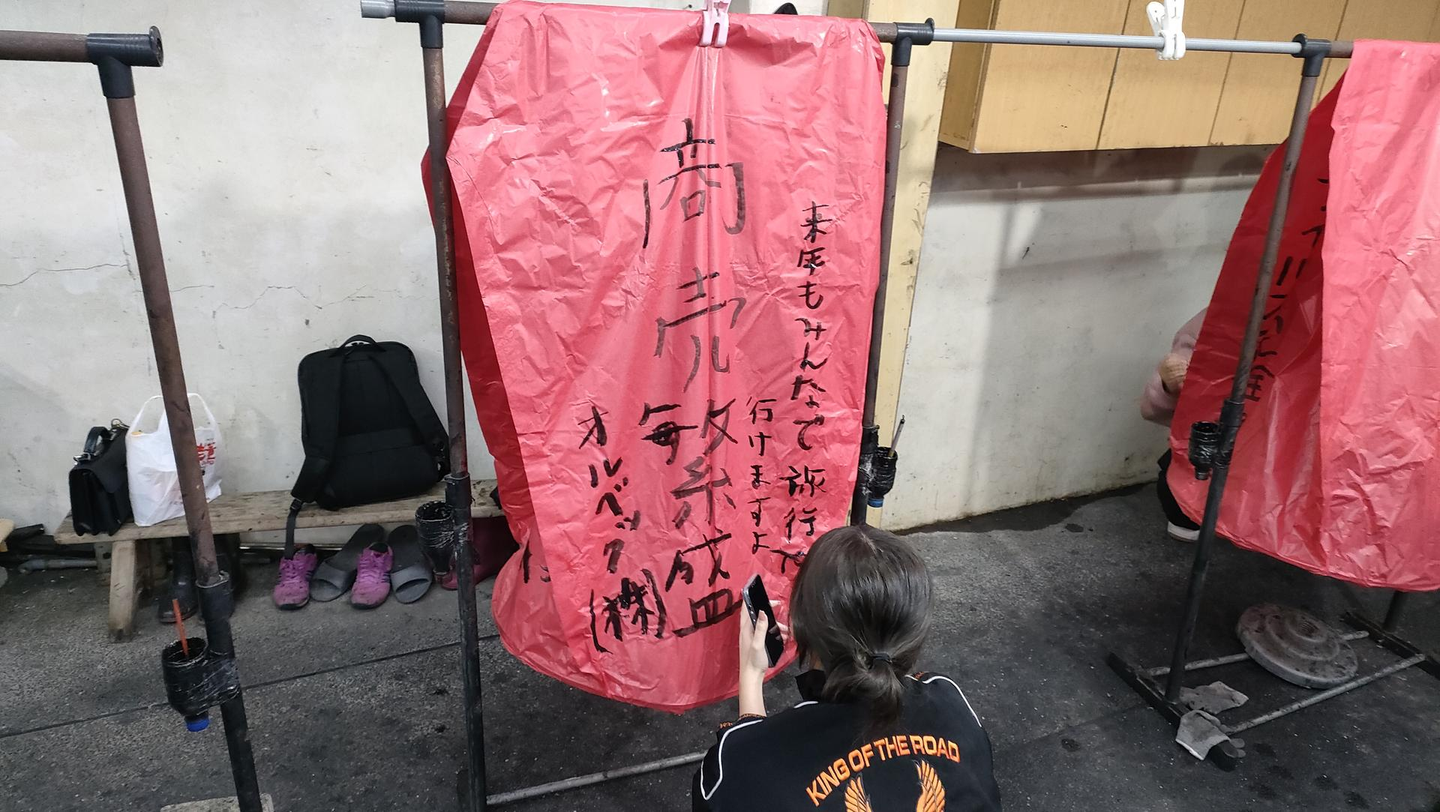 まずはランタンを購入し、筆で願い事を記載。メンバーそれぞれが個人的な願いを書き、最後に会社としての想いを書き込みました。