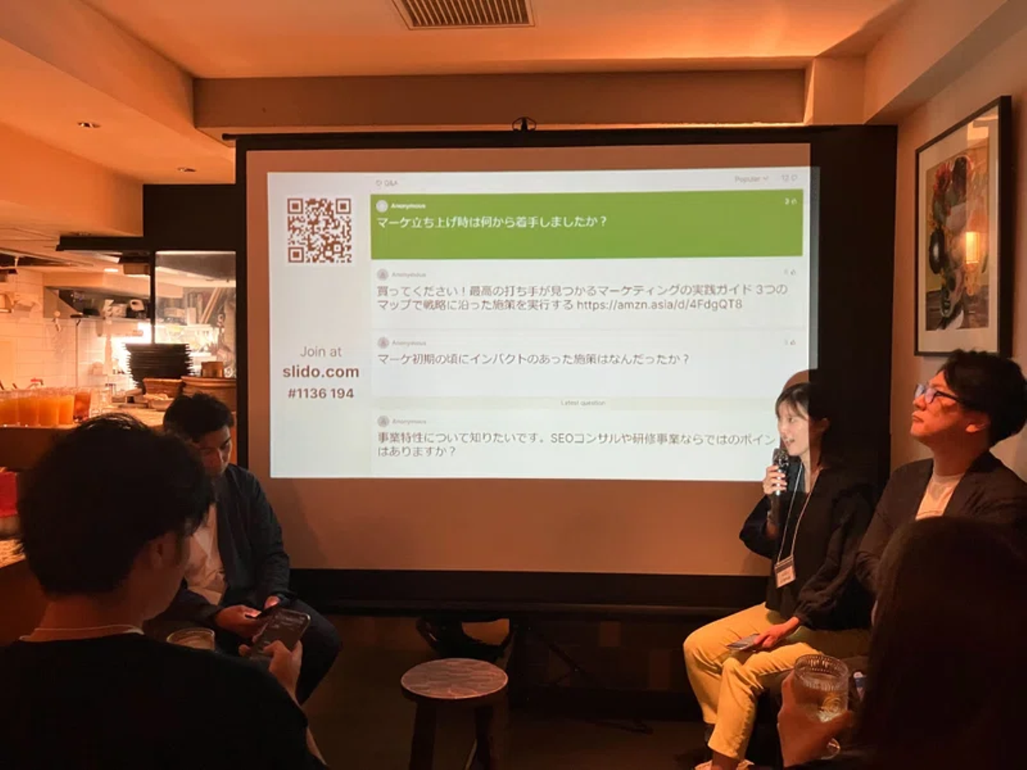 EVeMの富家さん、ナイルの大澤さん、弊社代表の原でオフラインならではの生々しいマーケトークで盛り上がりました!(今回はご飯も大好評でした!)