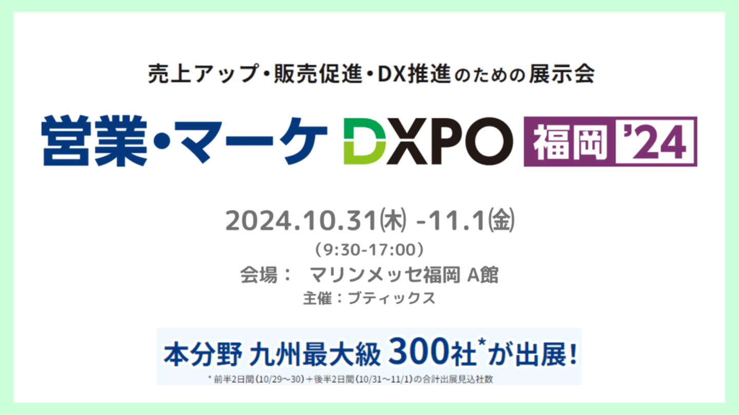 株式会社セールスリクエストは、2024年10月31日(木)~11月1日(金)にマリンメッセ福岡にて開催される「営業・マーケ DXPO福岡」に出展いたします。