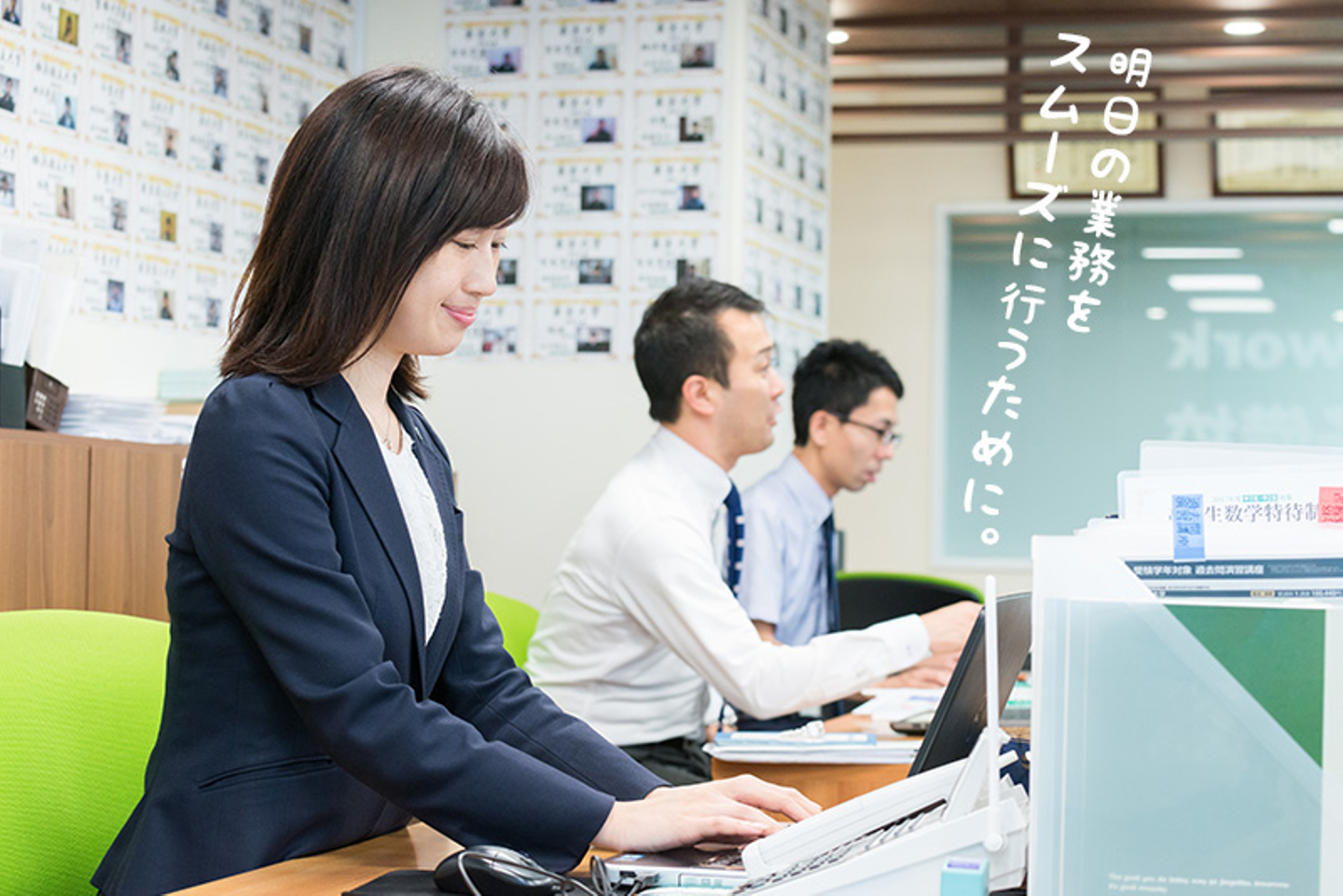 本日来校予定の体験生へのカリキュラム・願書作成や受講準備を行います。カリキュラムに関しては成績状況・志望校を加味した上で、上長とも話し合い、志望校合格に向けて最善となる講座を組んでいきます。また、内部性の面談準備もここで行います。