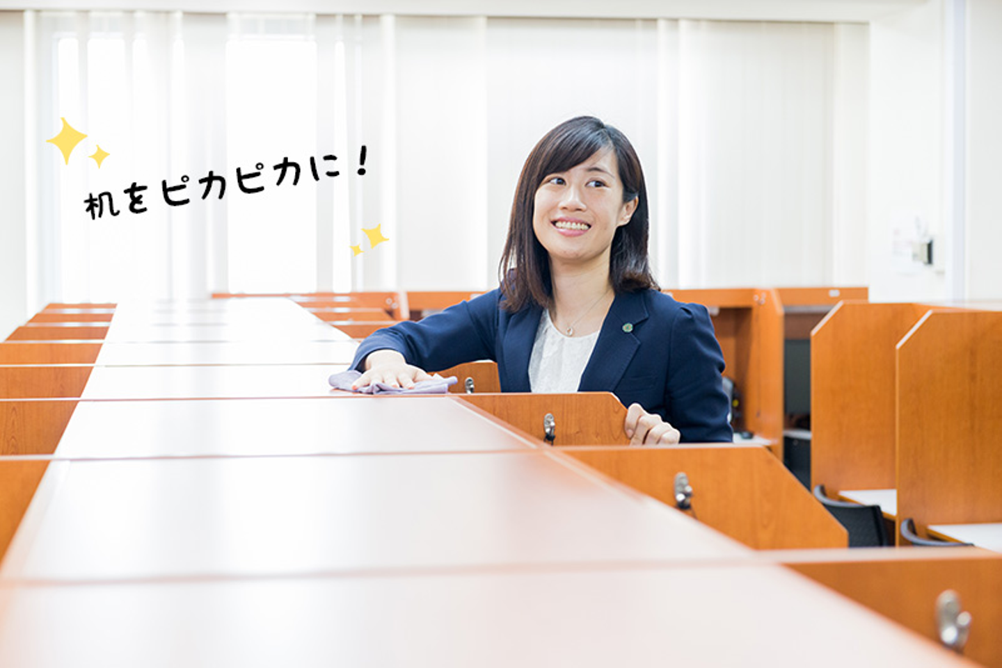 生徒を心地よく受け入れる環境づくりとして、出勤後の校舎清掃も欠かさず行います。