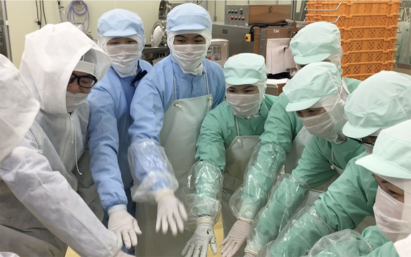 弊社は大きく分けて、「農産加工(工場)」、「農業生産(畑)」、「営業・事務」と3つの部門に分かれています。藤枝工場の立ち上げということで、京都から赴任した方もいれば、3月から新たに加わった新入社員の方も。