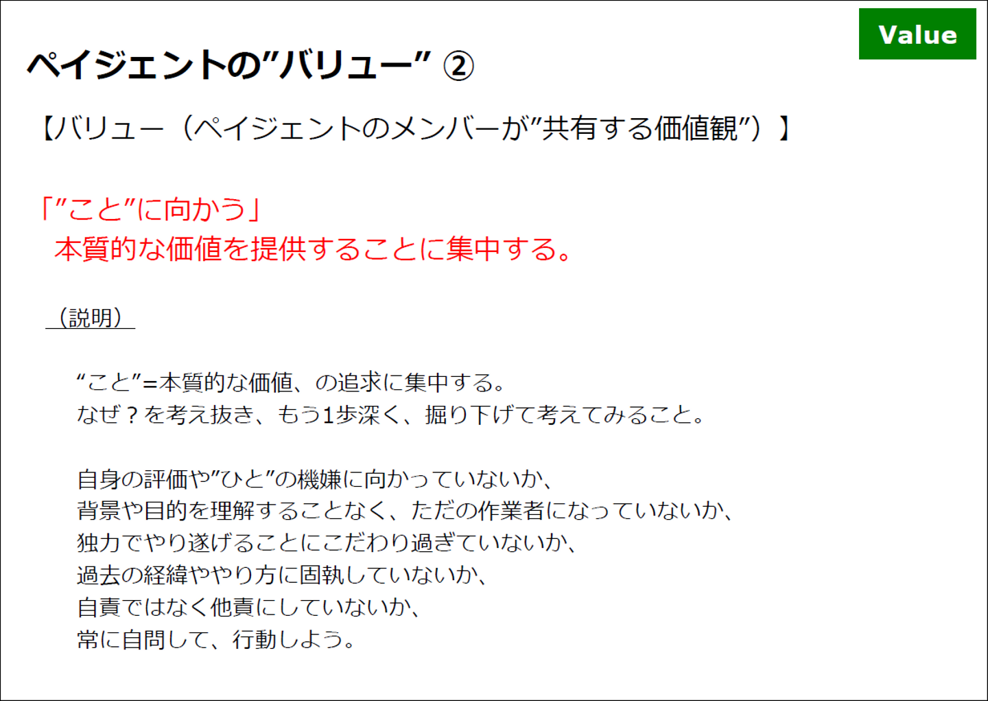 ペイジェントのプロパー(直雇用社員)も大半となり、改めて言語化する良いタイミング、