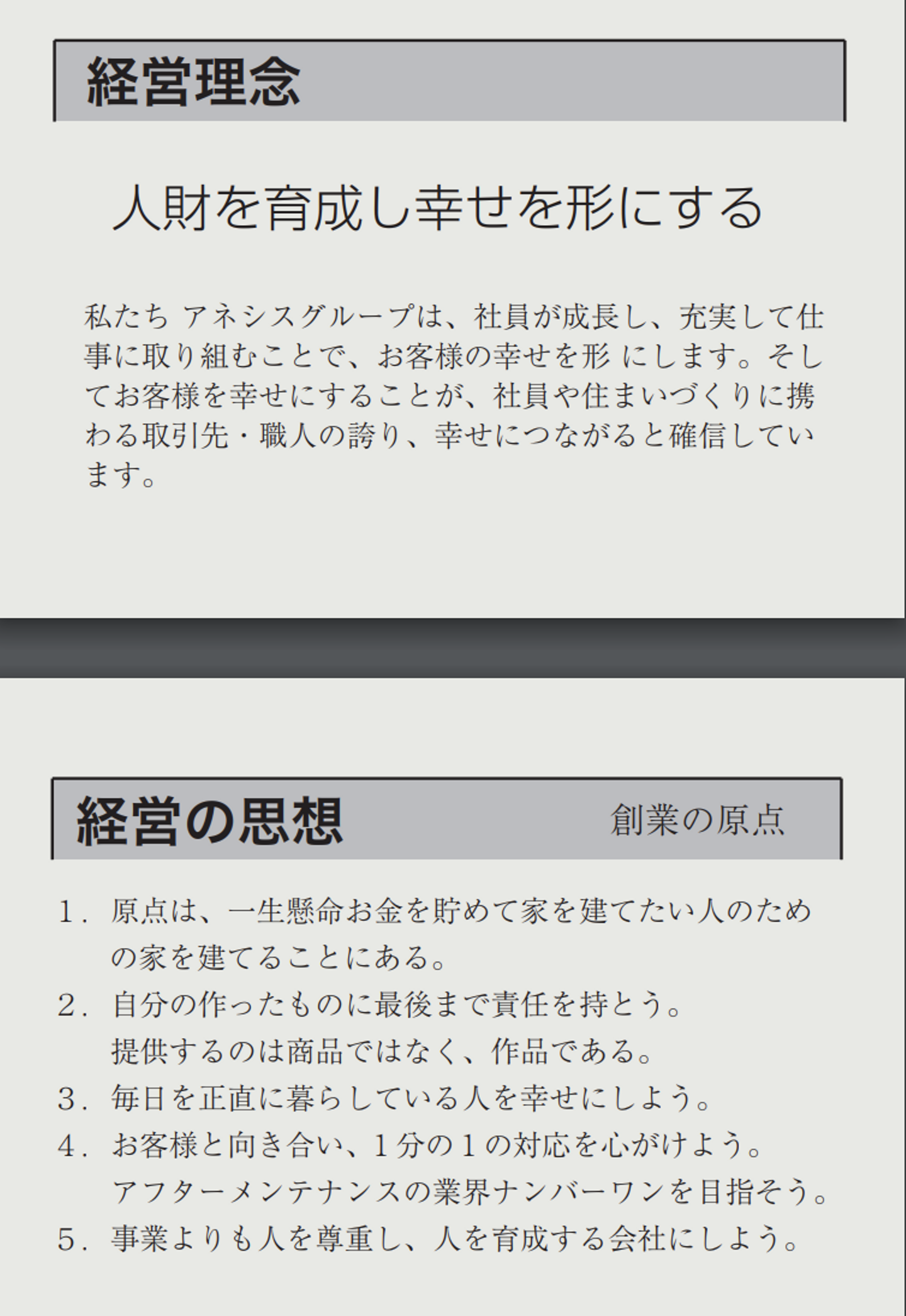 経営理念「人財を育成し幸せをカタチにする」