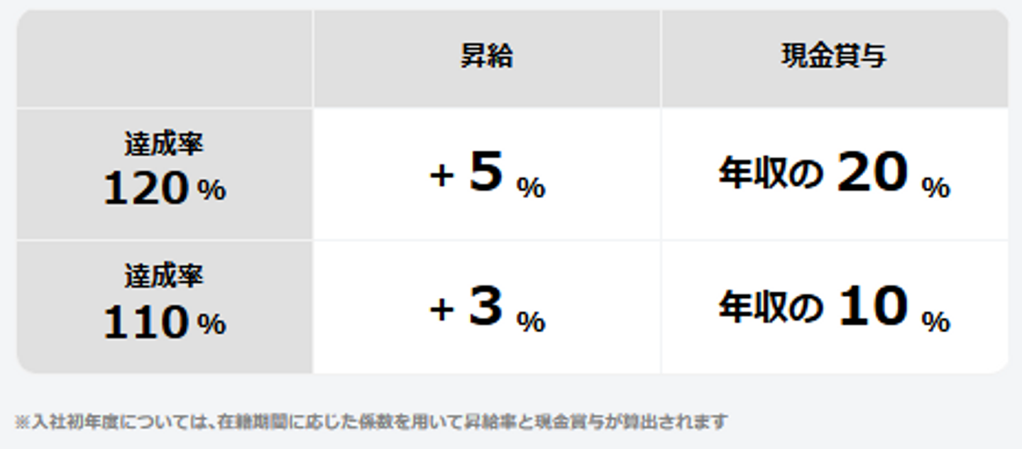 評価の対象は、年度初めに全社で定める事業目標の達成度のみ。その結果が、全メンバーの昇給や賞与に連動します。