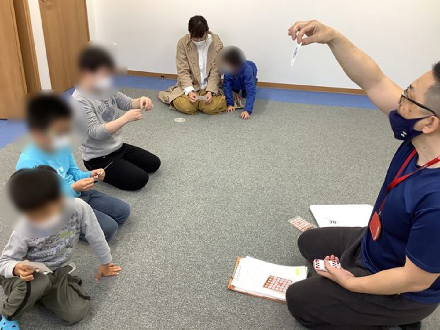 また、高学年の利用者さんの中には、出た数字をホワイトボードに書く、ビンゴになった人にプレゼントを渡す等のお手伝いをしてくれる利用者さんもおられました。