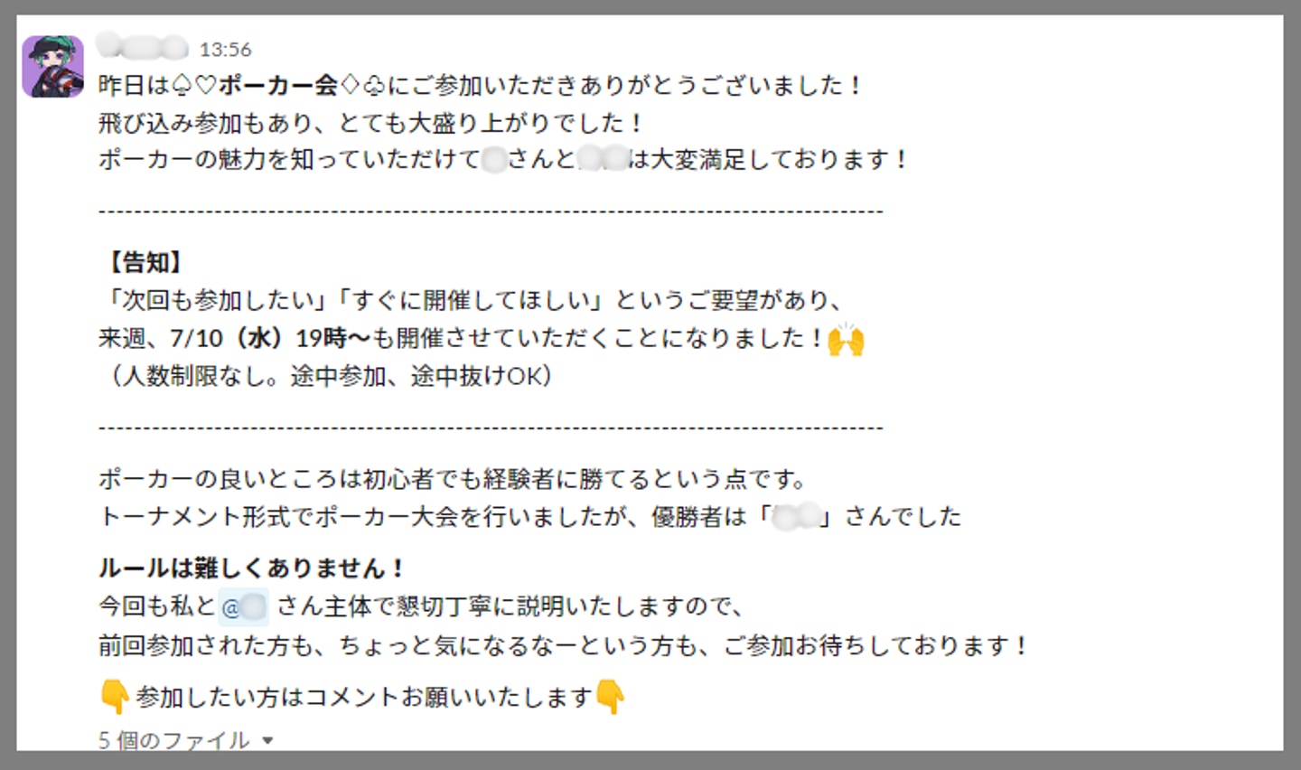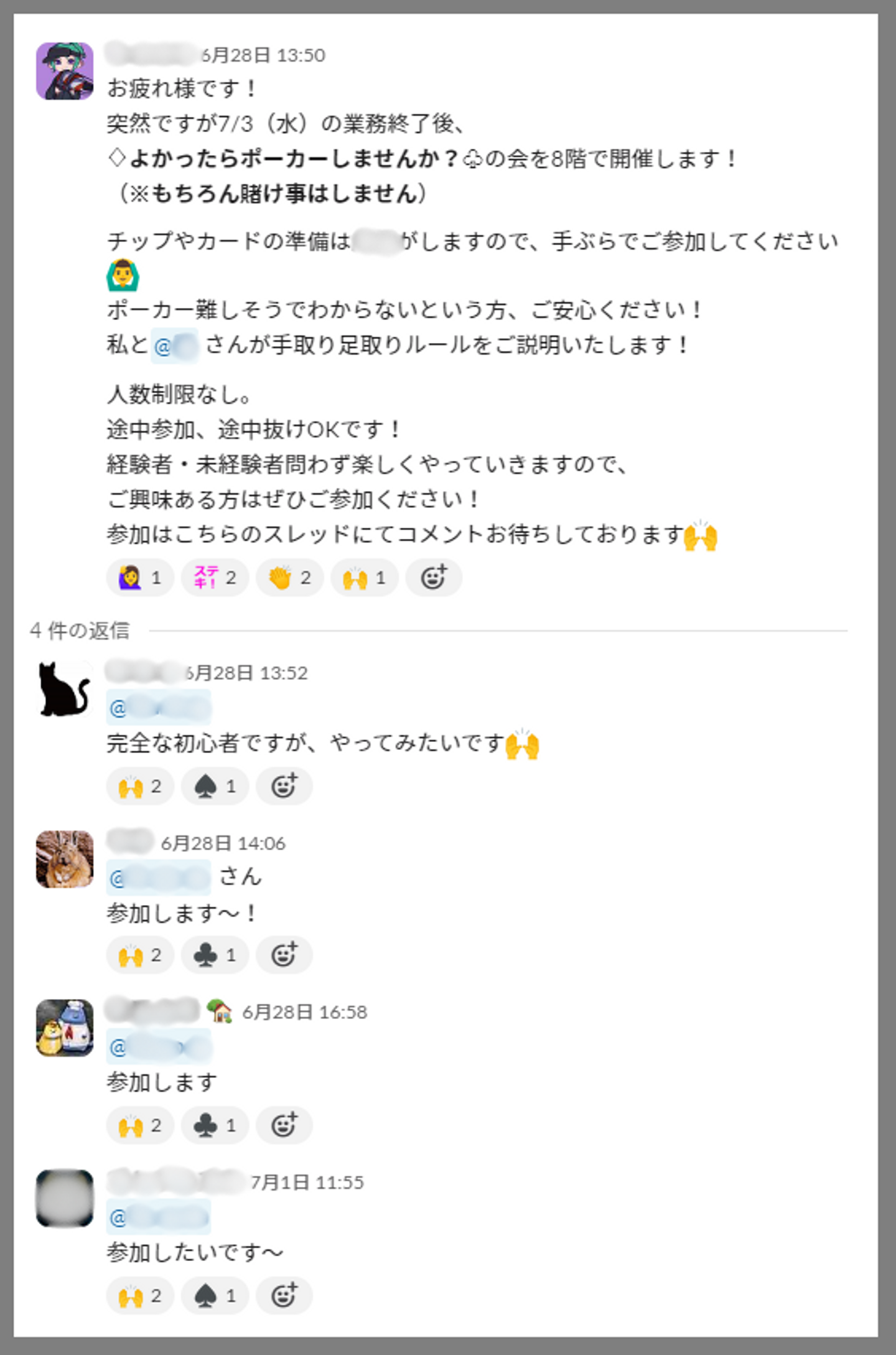続いて開催されたのが、Webクリエイティブ課Tさん主催によるポーカー🃏を楽しむ会。