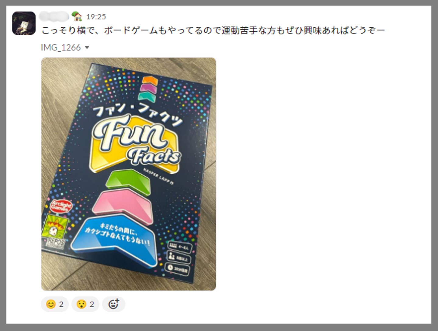 実はこの卓球大会の同時刻、運動苦手組でこっそりと(?)ボードゲーム大会も開催されていたようです😗
