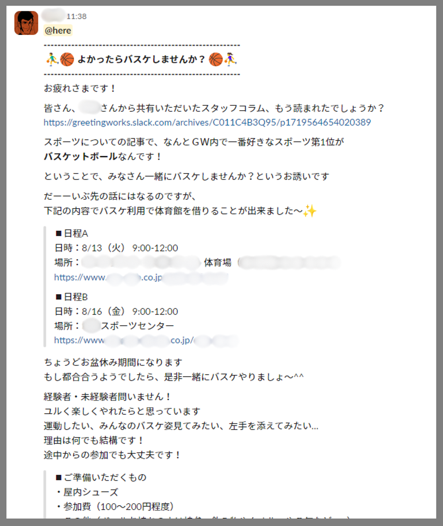 お誘い文の中にもありますが、GREETING WORKSの社内アンケートでの人気No,1スポーツがバスケットボールだったとのこと!!!