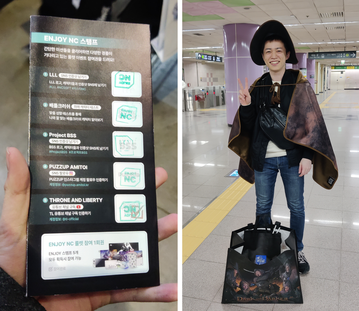 左:NCソフトのスタンプラリーの1面。SNS系と試遊系で別途ノベルティが用意されていた。
