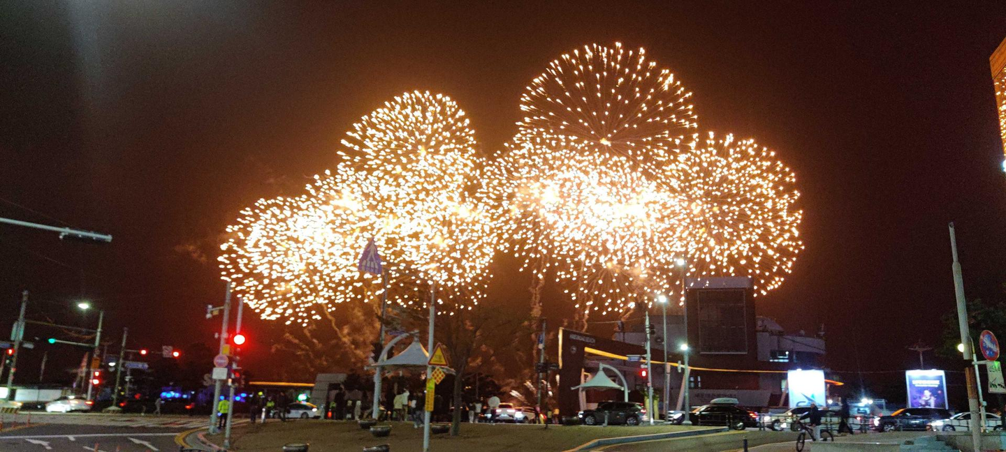 「WEMADE FESTIVE NIGHT」では約20分間の花火があげられ、G-STAR参加者だけでなく、観光客や地元の方など、多くの人々が海雲台の砂浜に集まっていました。