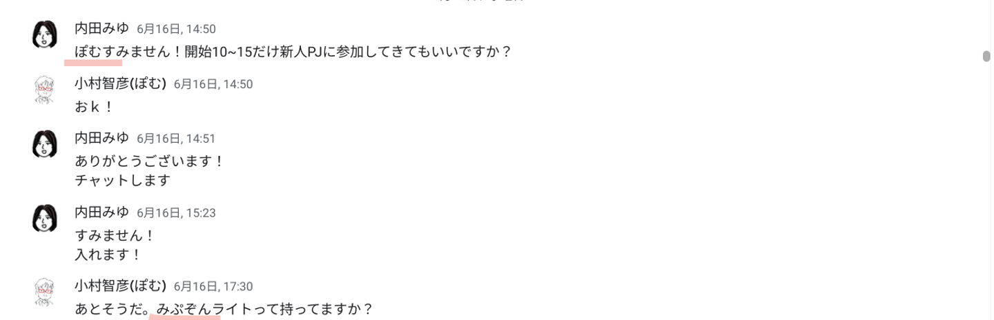 一般的には〇〇社長、〇〇部長、〇〇さんと呼ぶところを、「てんちょ!」(昔インターネット販売サイトの店長をやっていた社長)と呼んだり、「六文!」(真田家で有名な上田市出身のため、真田家の家紋「六文銭」が由来のチームリーダー)と呼んだり、他にも”やさい”とか”ぱんだ”とか、、、笑
