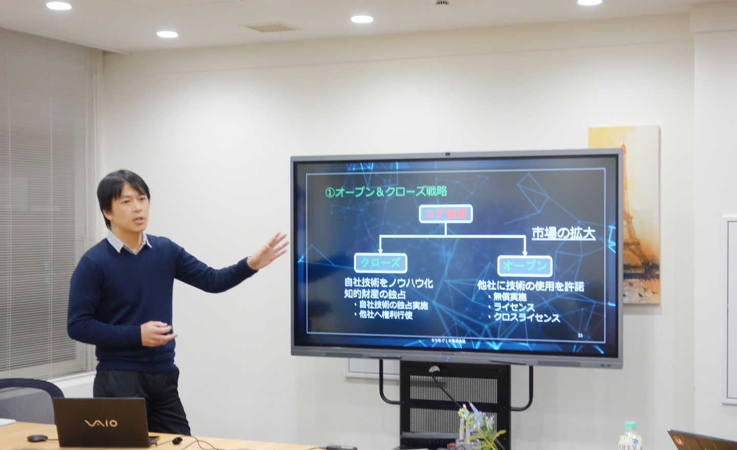まず、「オープン&クローズ戦略」に関しては、オープンにする技術とクローズにする技術を事業戦略に合わせて見極める必要があります。市場の拡大を目指すか市場の独占を図るのかで戦略も異なります。その上で、自社の技術を特許権として保護するのか?それともノウハウとして営業秘密管理をするのか?という進め方があります。