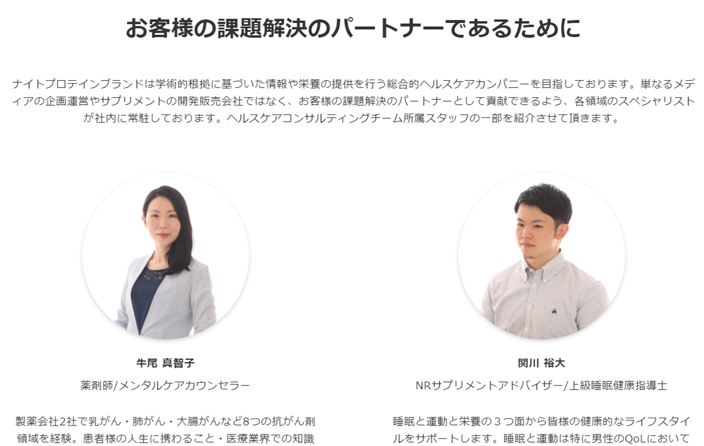(ナイトプロテインにはヘルスケアの有資格者が多数在籍しています)
