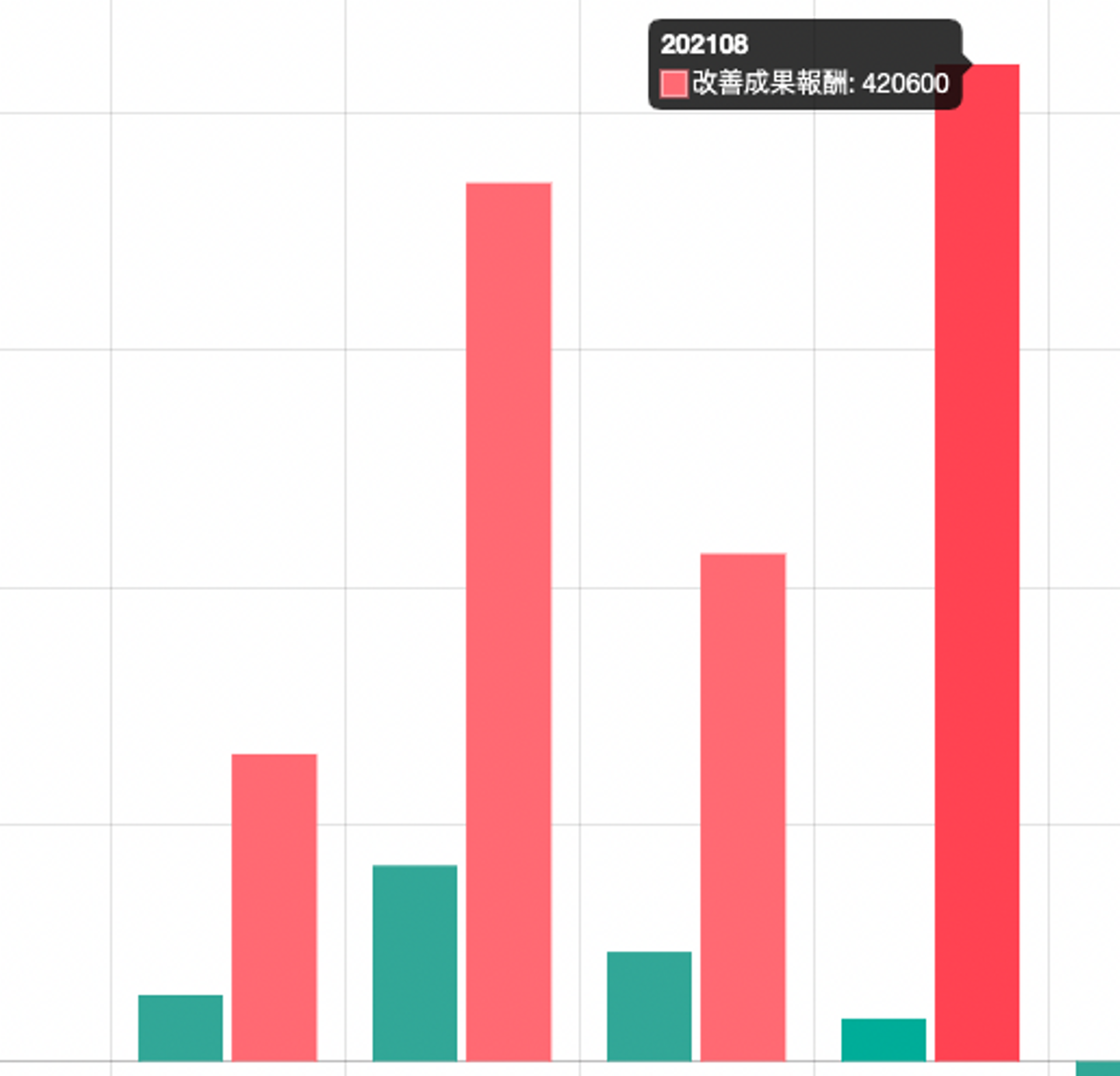 ちなみに社内では画像のように自分が行った施策でどのくらい売り上げが増えたのか?ということがグラフで表示されます!(8月は40万以上改善できました!嬉しい!( ・∇・))