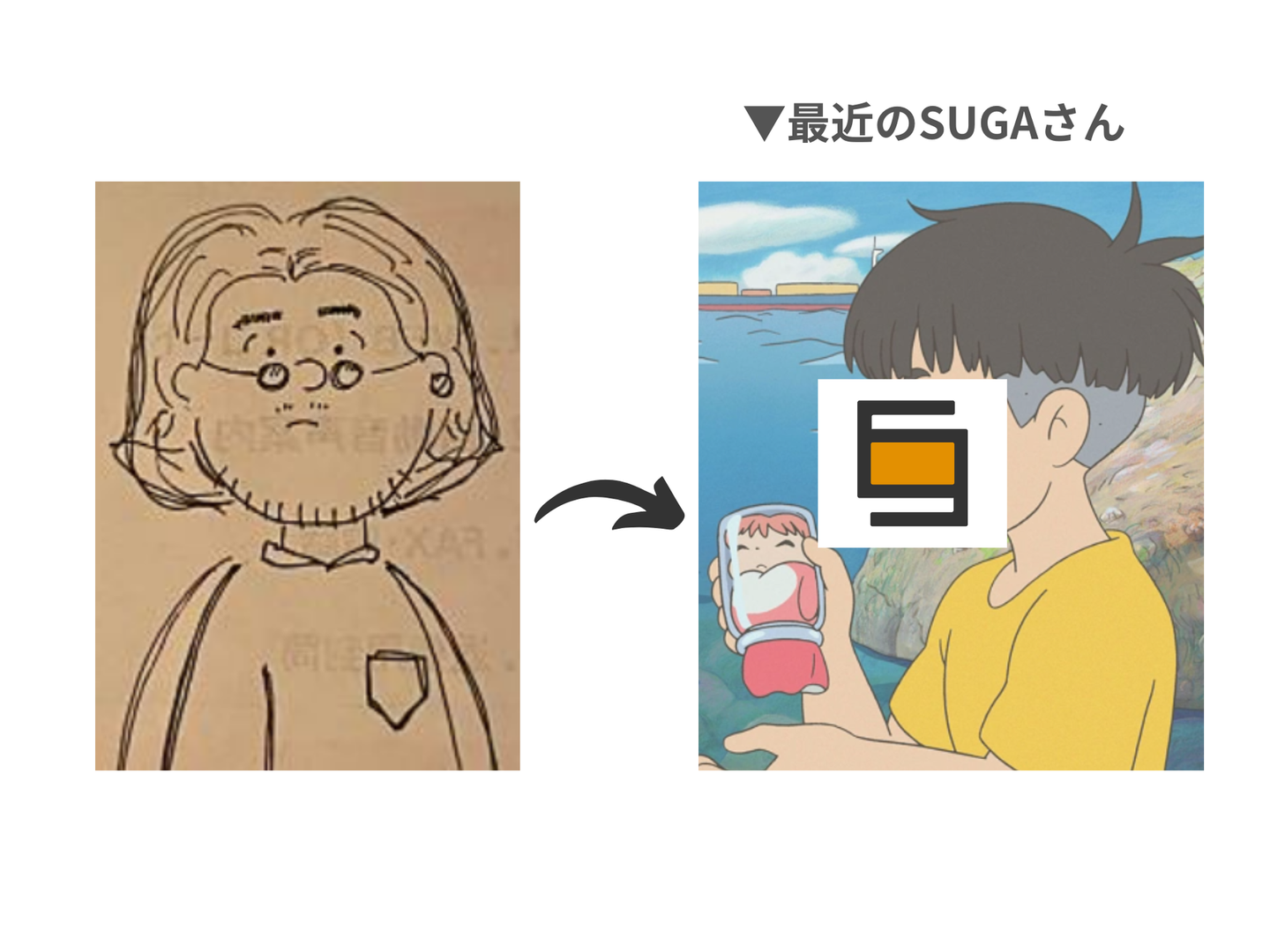 SUGAさんは、今まで『ジョンレノン』に似てるで有名でしたが、最近は某アニメ映画にでてくる男の子にそっくりです🐠