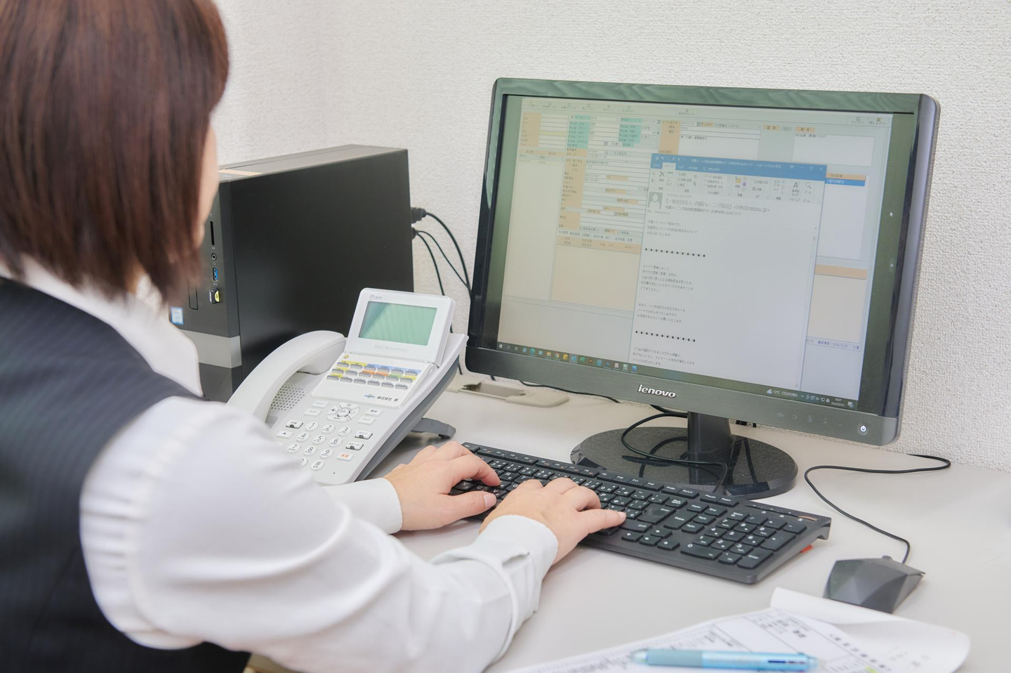 現在は電話やメール、FAXでいただく、腎臓病でお悩みの方からのお問い合わせや質問に対応したり、内臓トレーニングを実践されている方が定期的に送って下さる検査結果や実践報告に対して返信する業務が中心となっています。健康アドバイザーは、ある程度、病気や内臓トレーニングについて理解していないとできない業務なので、最初は定型文を使い、実践されている方に様子伺いの文章を送ることから始めました。どの位理解しているかを確認していただきながら、先輩が「この問合せに返信を書いてみよう」と少しずつレベルアップさせてくれました。自分の書いた内容にアドバイスをもらい、修正をかけていくことを繰り返していくので、自分が病気や内臓トレーニングを理解するための勉強にもなりました。