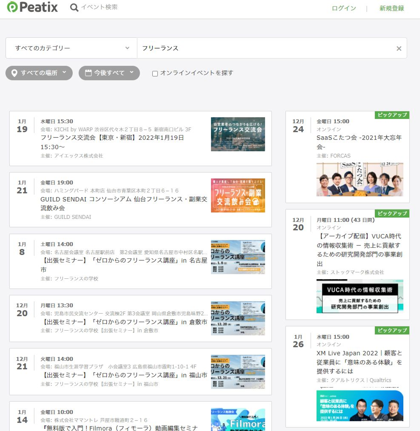 Peatix、こくちーずプロを利用してフリーランス向けの催しを探す
