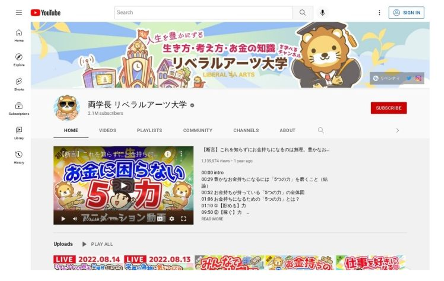 お金の貯める力・稼ぐ力・増やす力・守る力の具体例はこちらのYoutubeチャンネルにて解説されています。