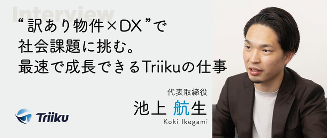Triiku(トリイク)は、空き家をはじめとした「訳あり物件」の再生・販売事業を手がける不動産テック。DXとデジタルマーケティングを活かして、社会課題の解決に取り組んでいます。共同創業者である同社取締役の福田真志氏に、その挑戦の背景にある創業の経緯、そして他社にはない事業の強みなどを聞きました。「町の不動産屋」からデベロッパーへ。Triikuのもう一つの原点誰も真似できない「未来の不動産ビジネスをやろう」新しい不動産投資のマーケットを築きたい「町の不動産屋」からデベロッパーへ。Triikuのもう一つの原点 ――創業前のご自身のキャリアや経験も含めて、福田さんの自己紹介をお願いします。私の...
