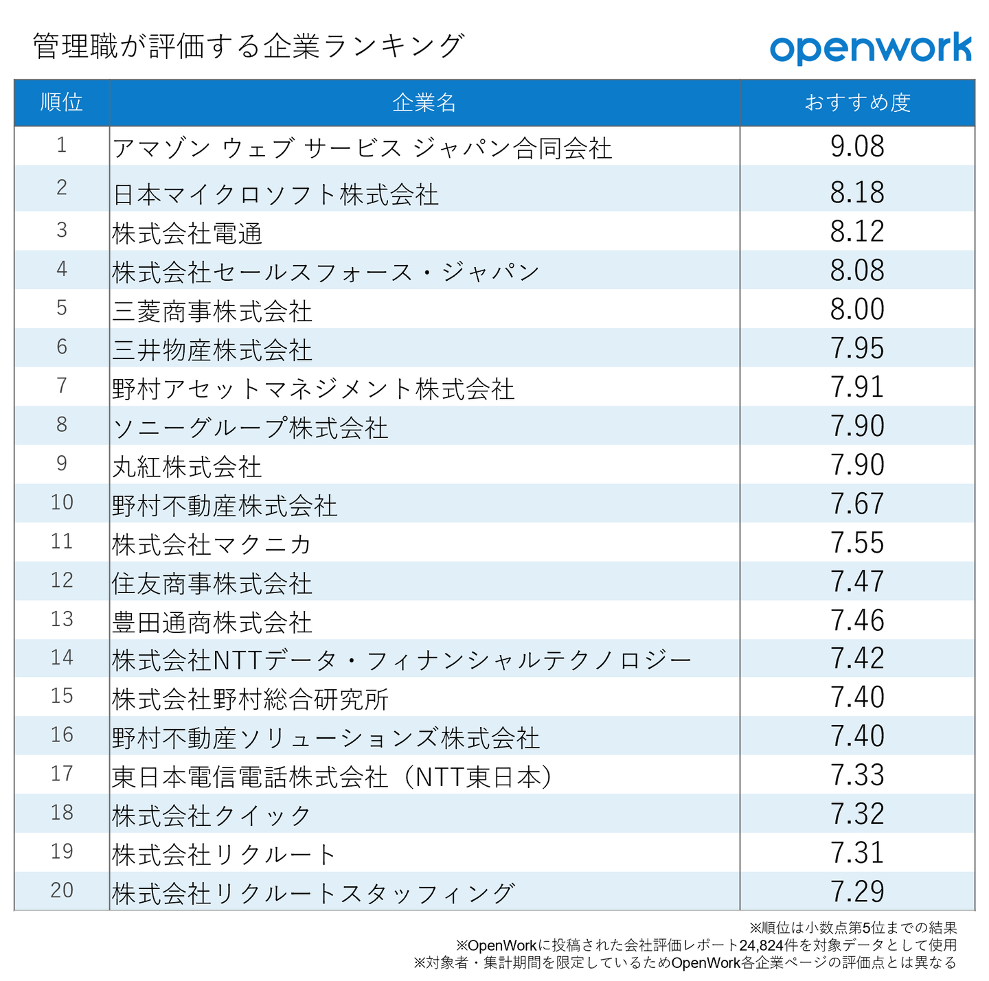 オープンワーク株式会社のニュースリリースページです。「管理職が評価する企業ランキング」を発表しました(働きがい研究所 調査レポートvol.126)