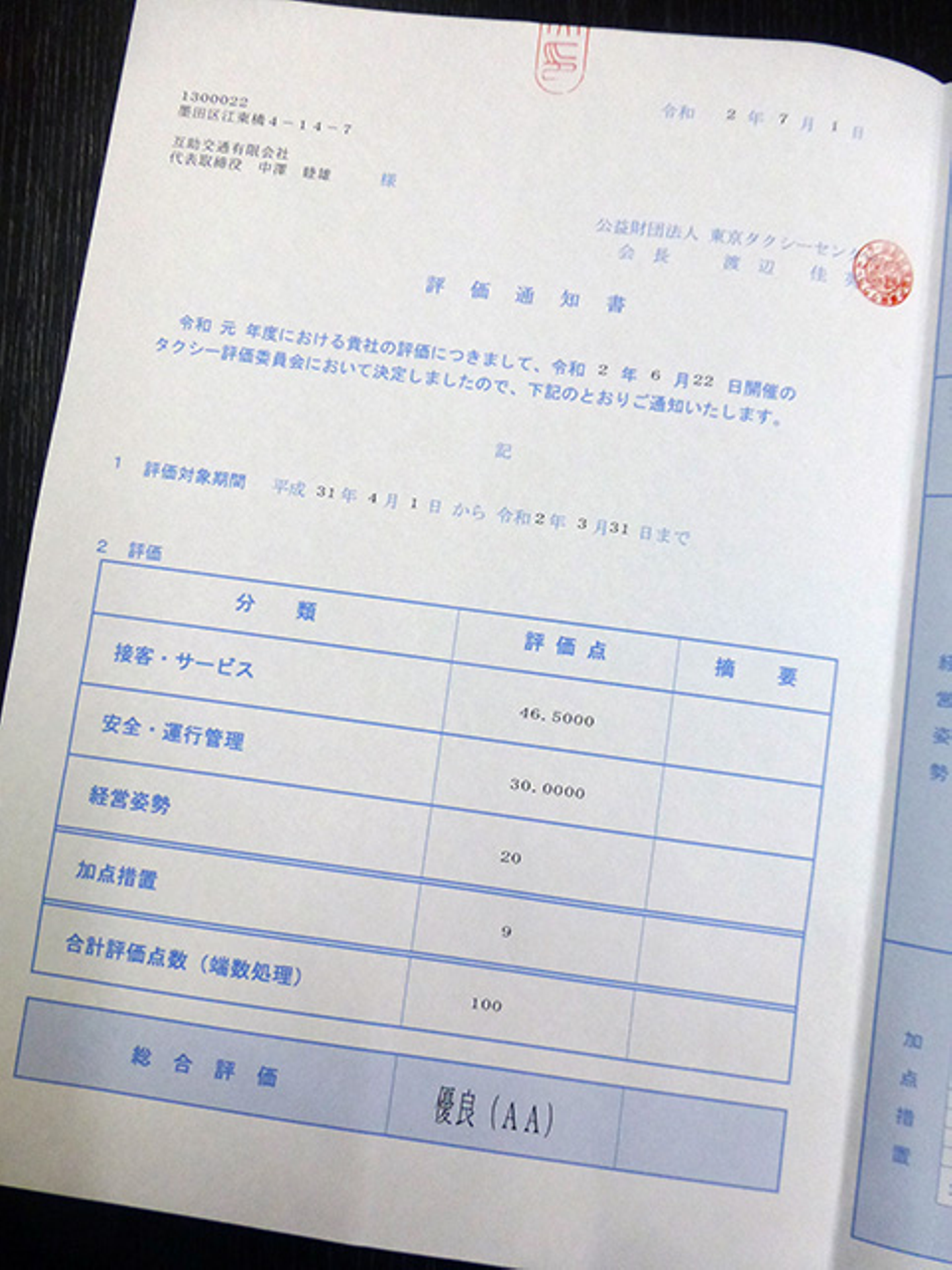 東京タクシーセンターによる「法人タクシー事業者の安全・サービス等に関する評価制度」の2019年度の評価が出ました。