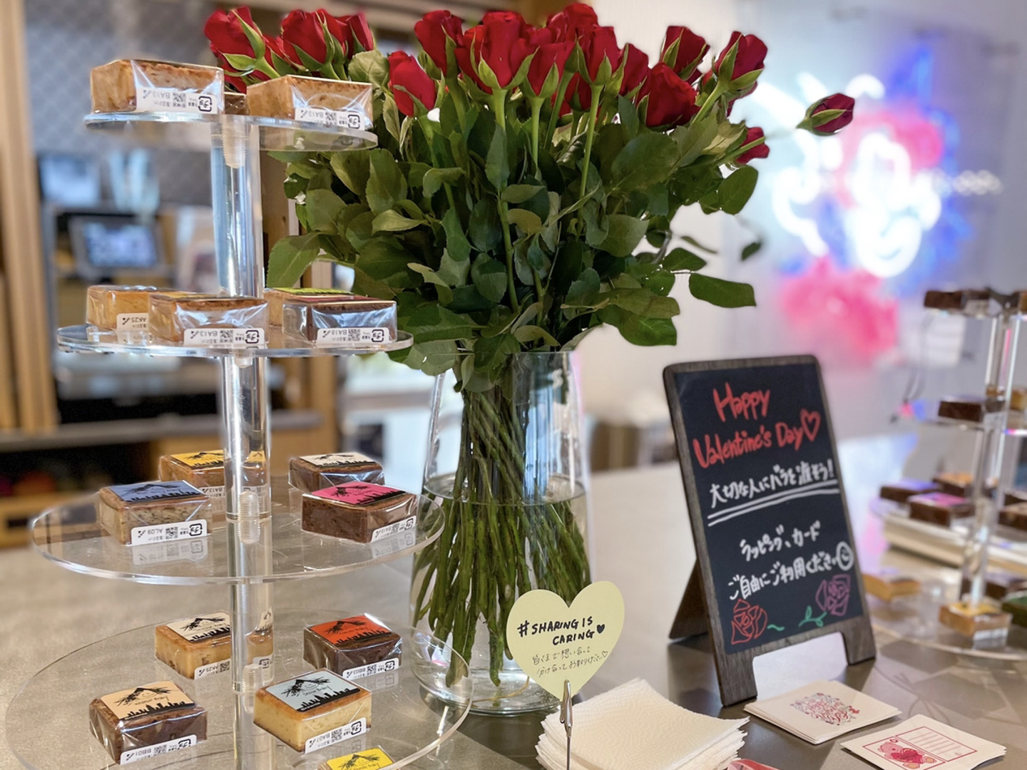 写真はバレンタインの時のもので、バラをプレゼントしたい相手に包んで持って帰るなんていうロマンチックな演出もありました♪