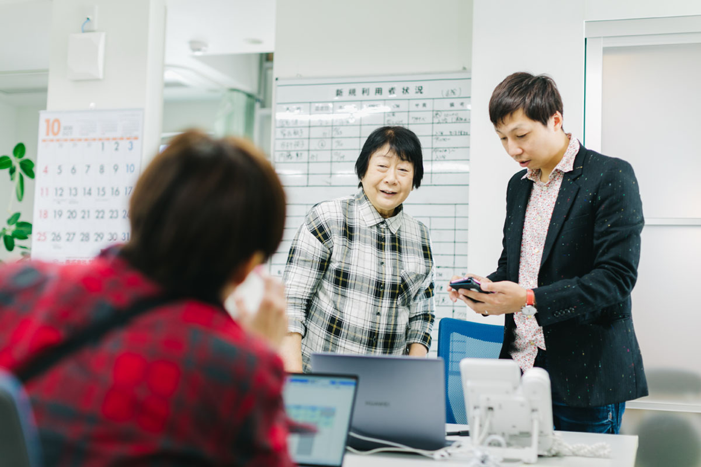 3年前には、ヘルパーさんがまわるためのシフト共有ソフトを導入。他にも、書類のクラウドボックス管理や、ラインワークスの導入によるコミュニケーション円滑化などを行っています。