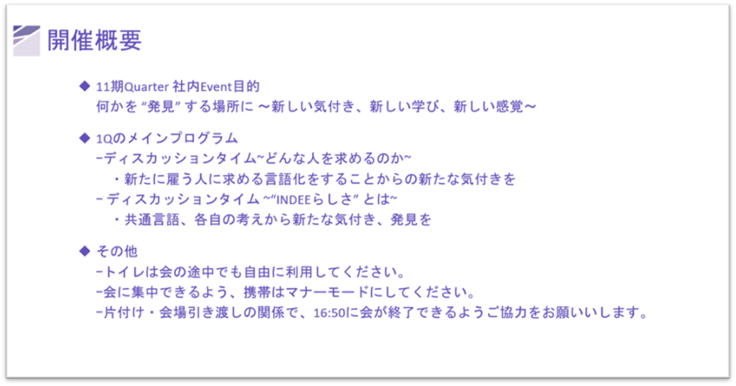 INDEEに興味を持っていただいた方にも是非お伝えできれば!と思う内容も盛りだくさんでしたので、今日はその点をお伝えしていきます。