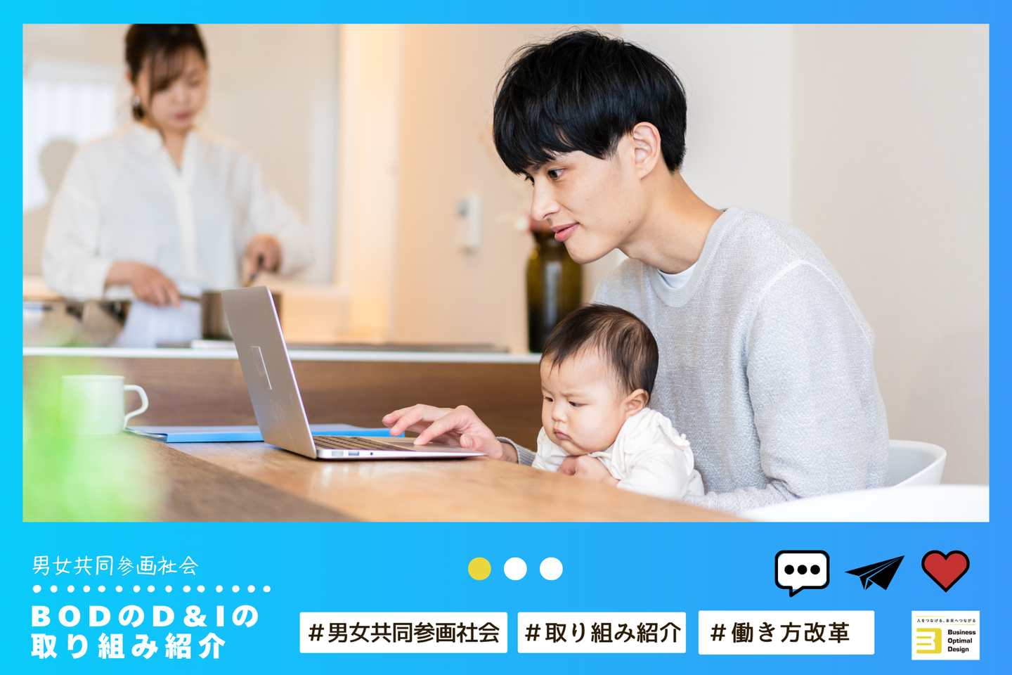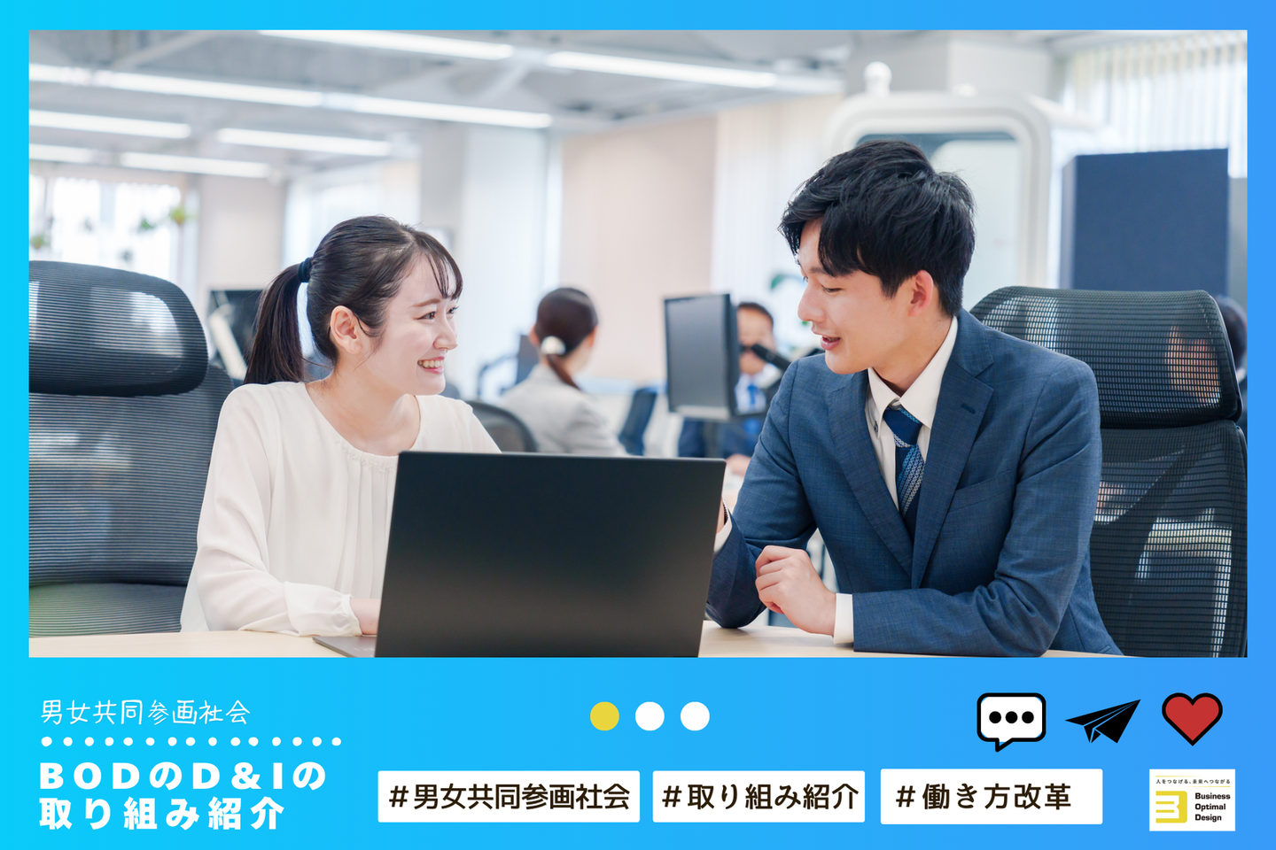私たち株式会社BODは、ジェンダーにとらわれず、全従業員が輝ける職場を提供することをミッションと捉えています。女性従業員が過半数を占めている当社では、女性の活躍推進、男性の育児参画推進など、ワークライフバランスの実現に向けた多様な働き方の導入や幅広い研修制度を設けています。さまざまな取り組みを通じて、従業員一人ひとりが最大限に才能を発揮できる環境づくりを進めています。
