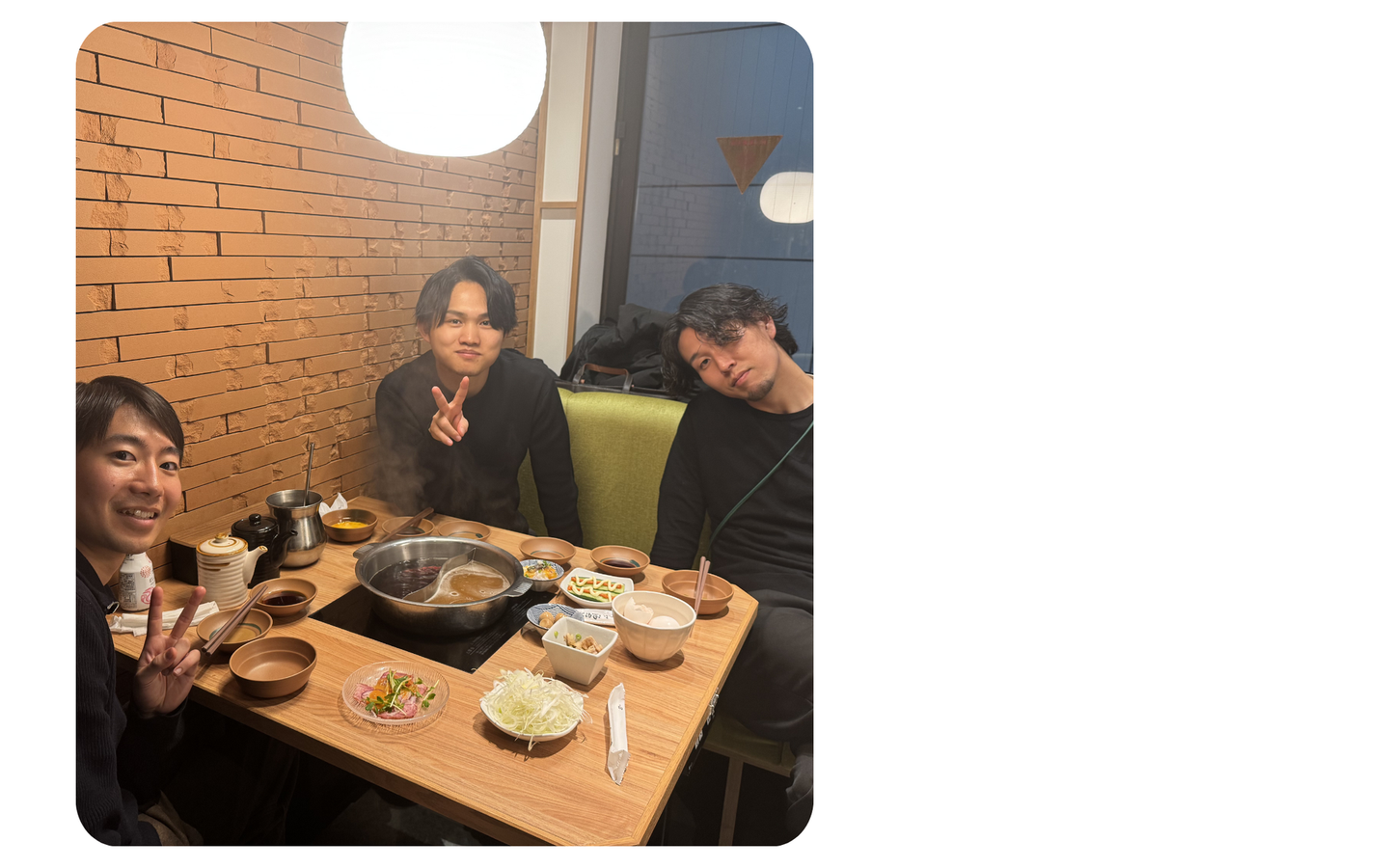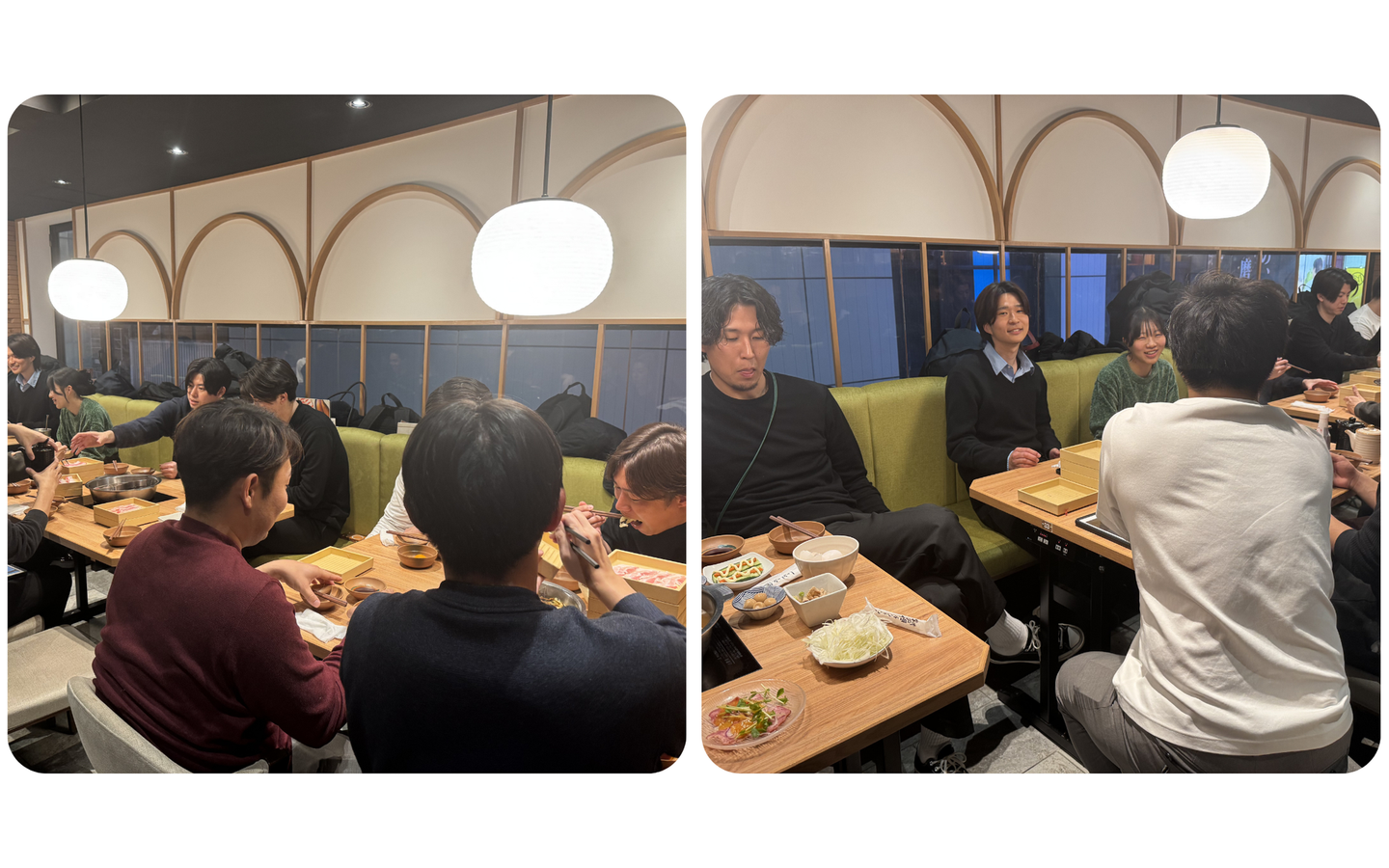 ボウリングの後は、みんなでご飯へ。普段の仕事では見られない一面が見えたり、新しいメンバー同士で会話が生まれたり。こうした時間を通して、チームとしての距離もぐっと近くなった気がします。