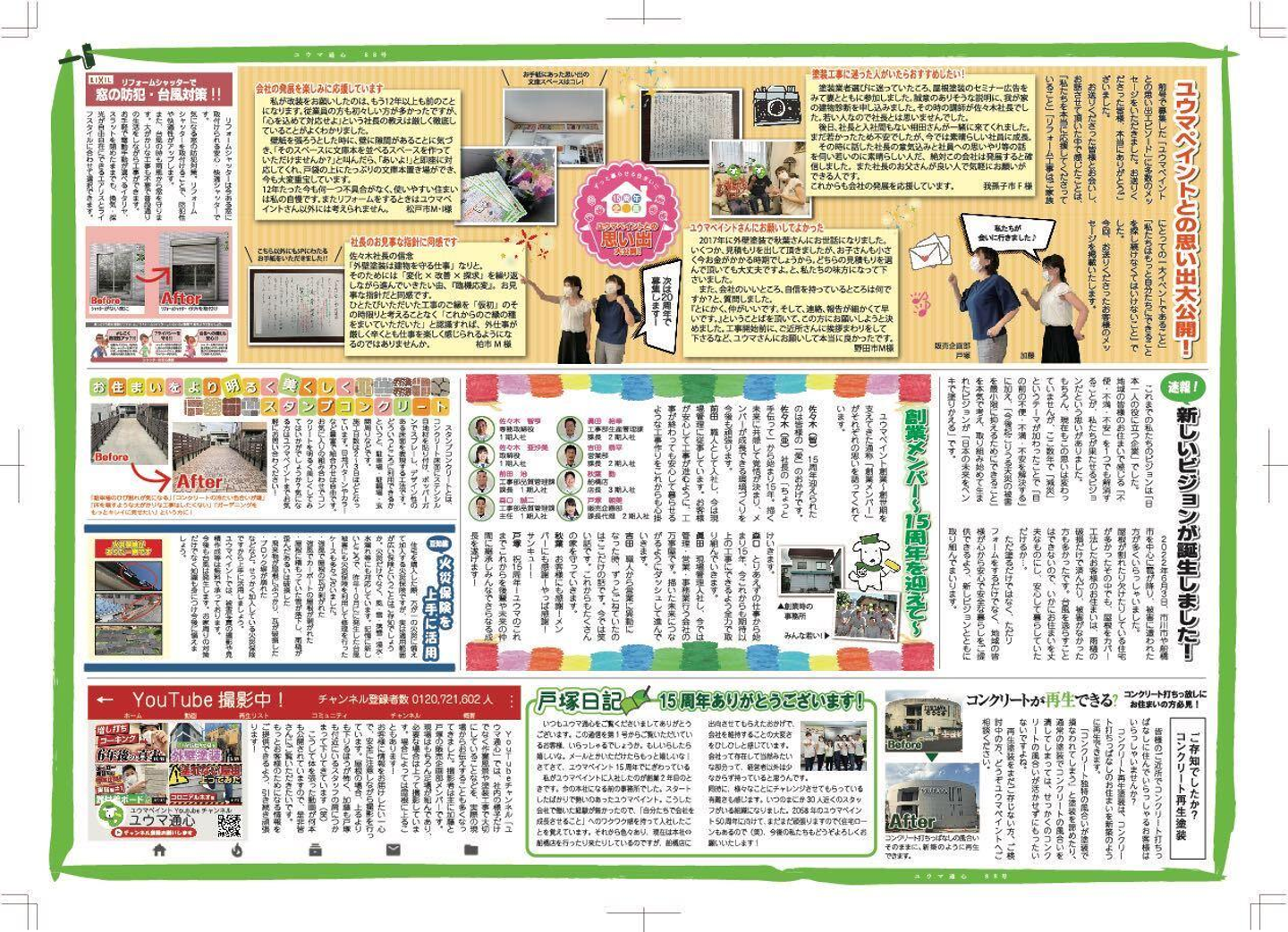また15周年記念イベントを8月20日、21日に開催したため、その告知も載せていましたね。あとは前号で「ユウマペイントとの思い出エピソード」をお客様に募集し、たくさんのお便りをもらっていました。その中からいくつかを抜粋して、本号に掲載しています。