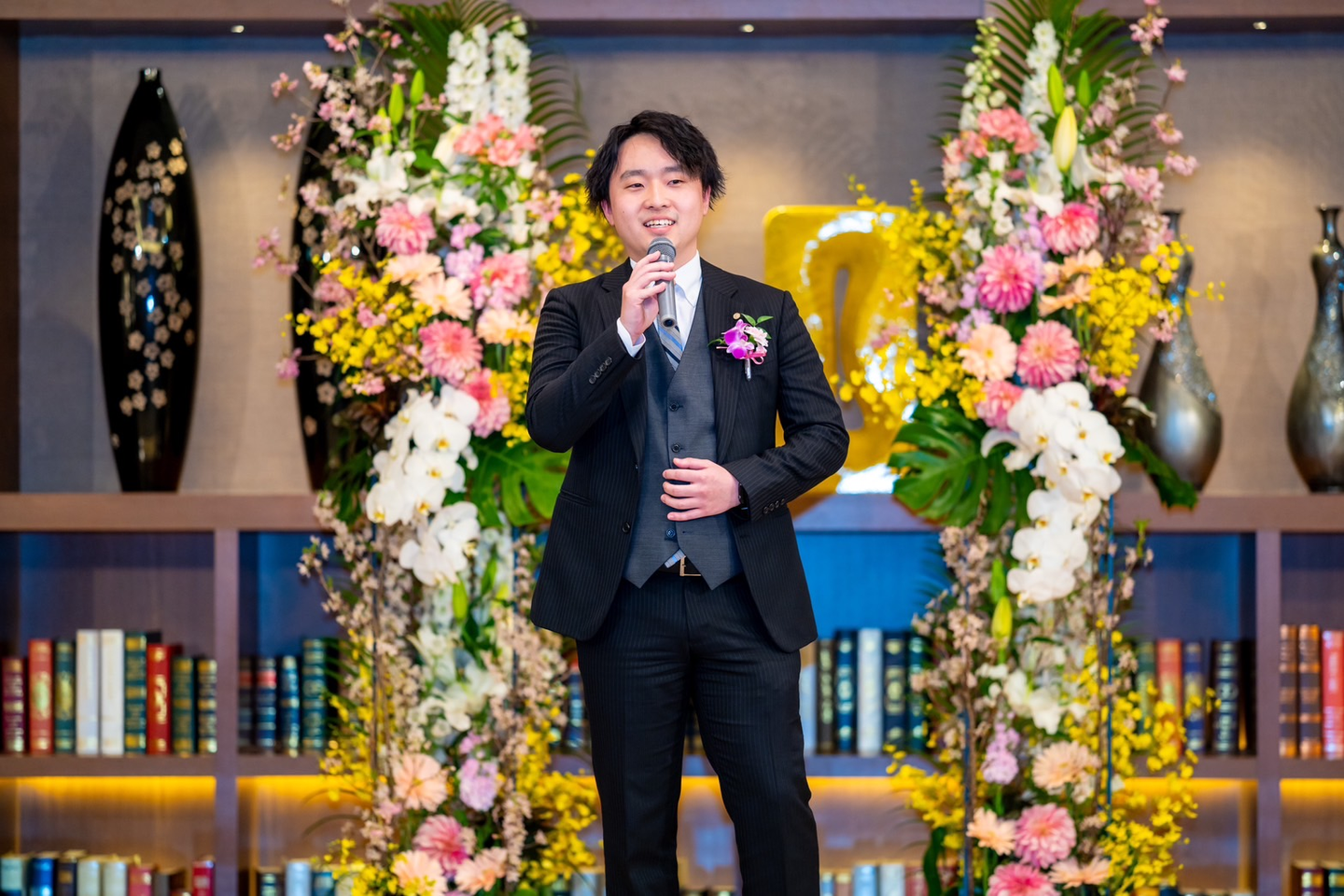 本日は私たち、新入社員のためにこのような盛大な式を開催してくださりありがとうございます。
