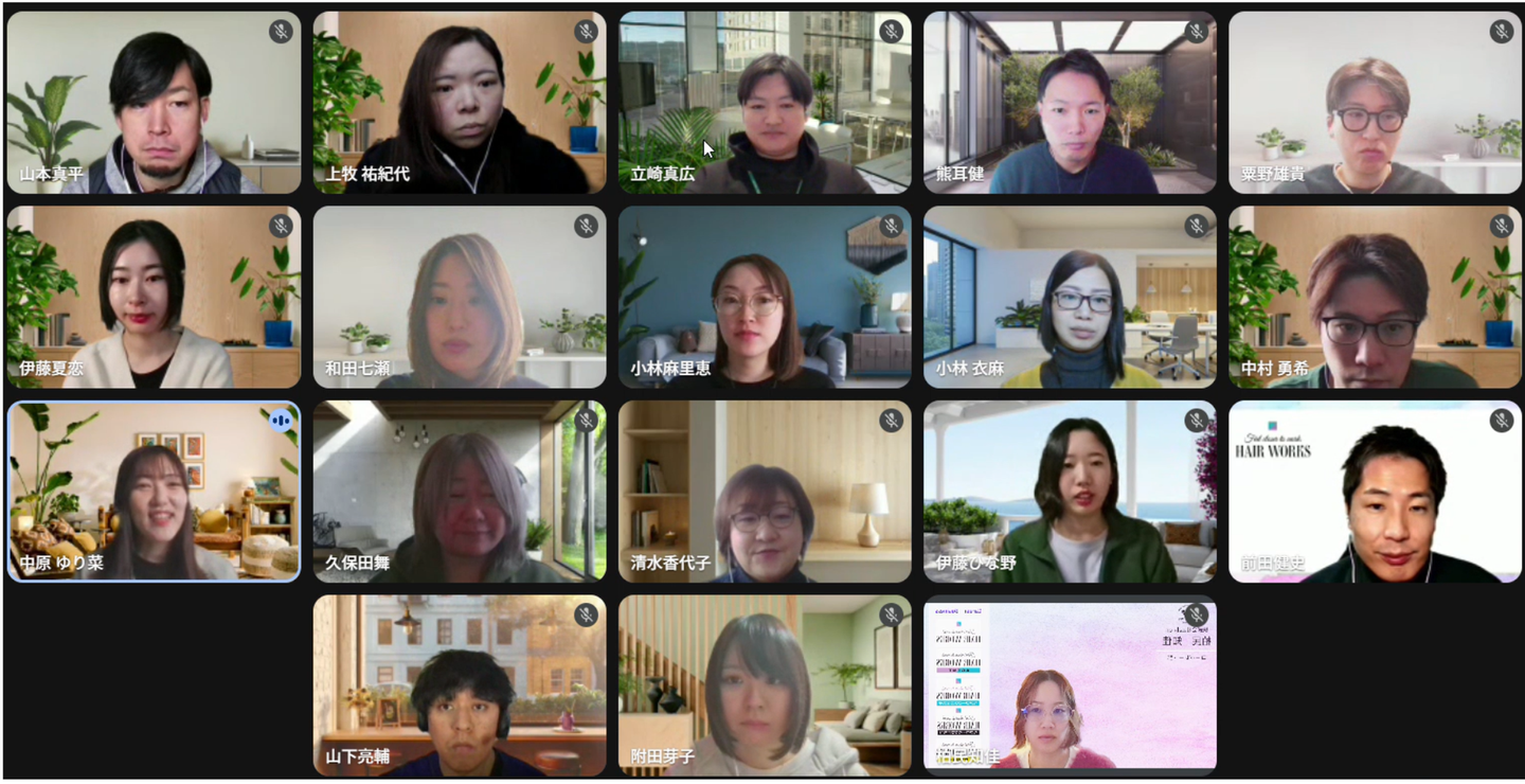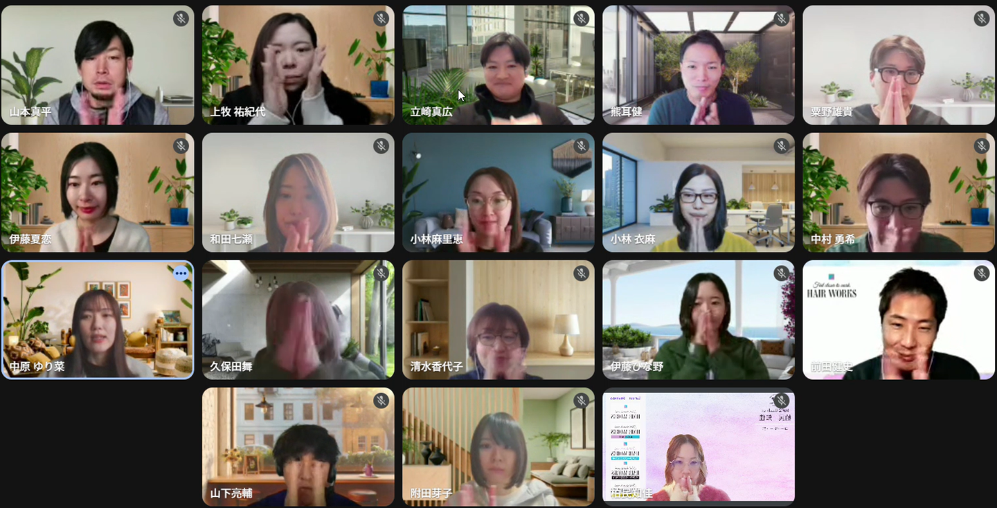 ▲マイクはみんなミュートなので、サイレント拍手で終了!